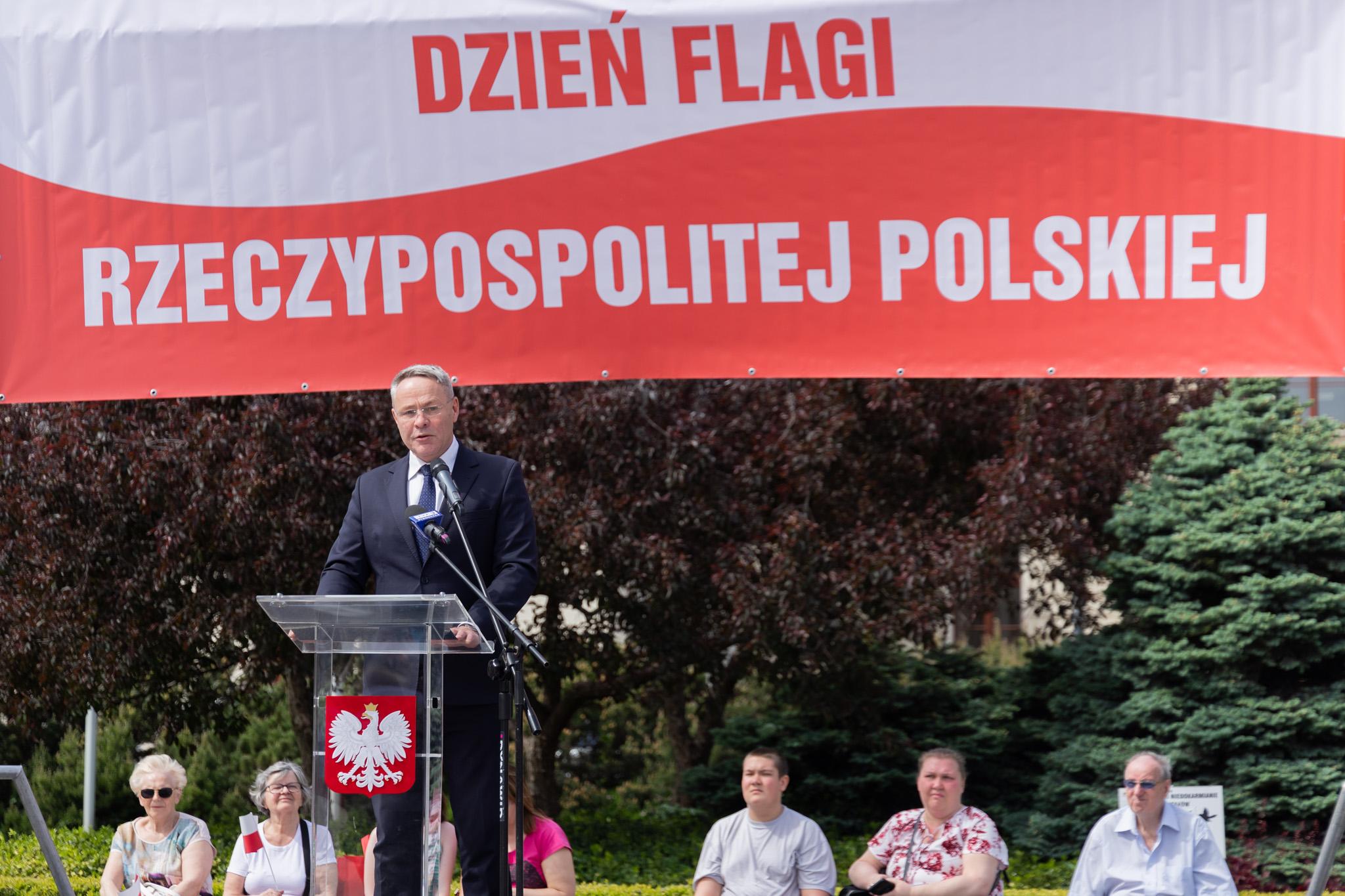 Spotykamy się w Dniu Flagi, w dniu w którym trzeba powiedzieć, że polska flaga jest najważniejsza. Dzięki silnej pozycji Polski w Europie, koło polskiej flagi powiewa flaga NATO i flaga Unii Europejskiej. Chciałbym byśmy pracowali tak, aby pod polską flagą zmieścili się wszyscy. Polska w swojej historii w zdecydowanie większości czasu była krajem otwartym i tolerancyjnym. Pamiętajmy, polska flaga jest najważniejsza