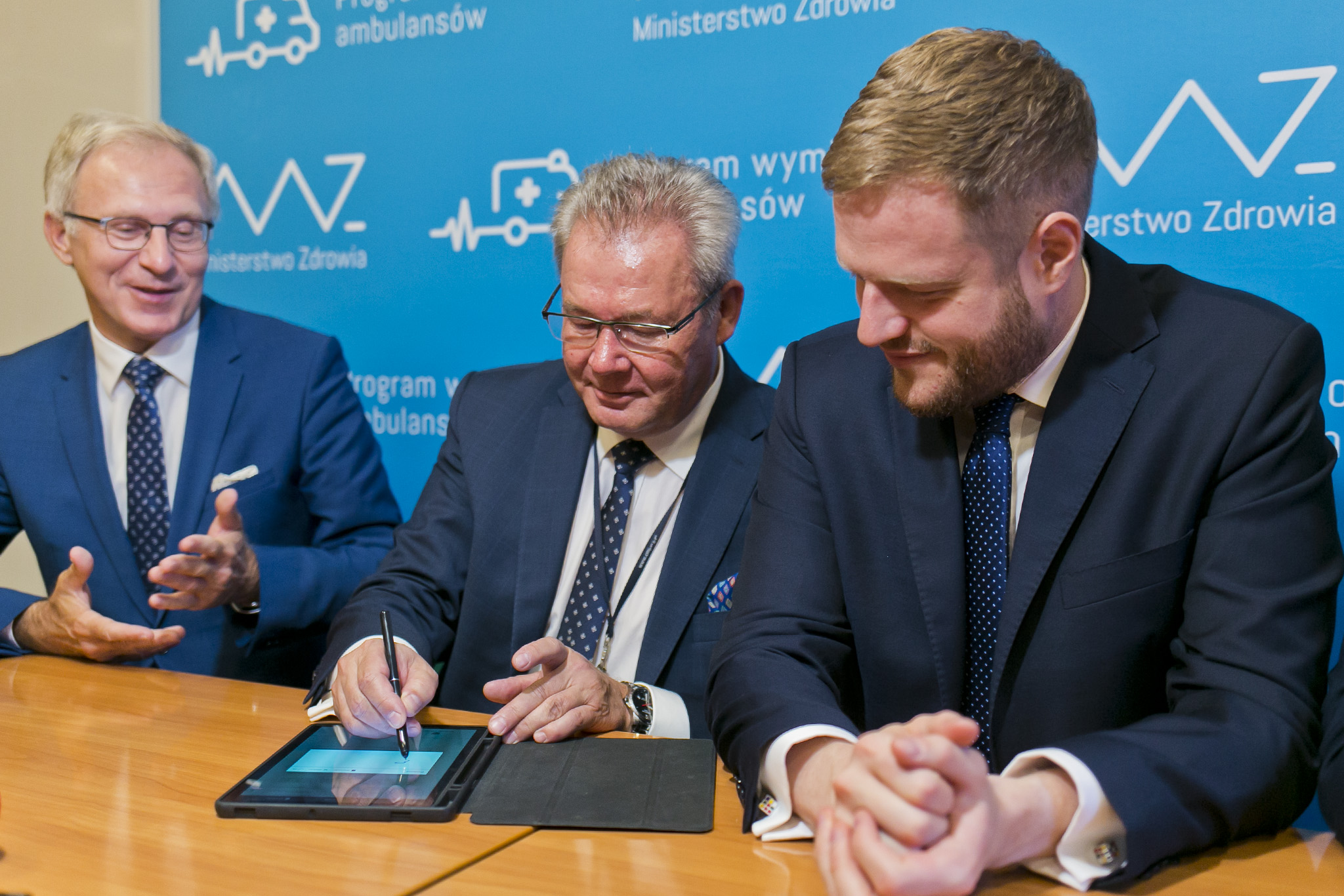 Wiceszef resortu zdrowia Janusz Cieszyński podczas dzisiejszej wizyty w naszym regionie podpisze 6 umów o dofinansowanie wymiany karetek. Pierwszą z nich podpisał z dyrektorem lecznicy w Inowrocławiu drem n. med. Eligiuszem Patalasem. Pozostałe umowy zostaną podpisane do końca tygodnia.