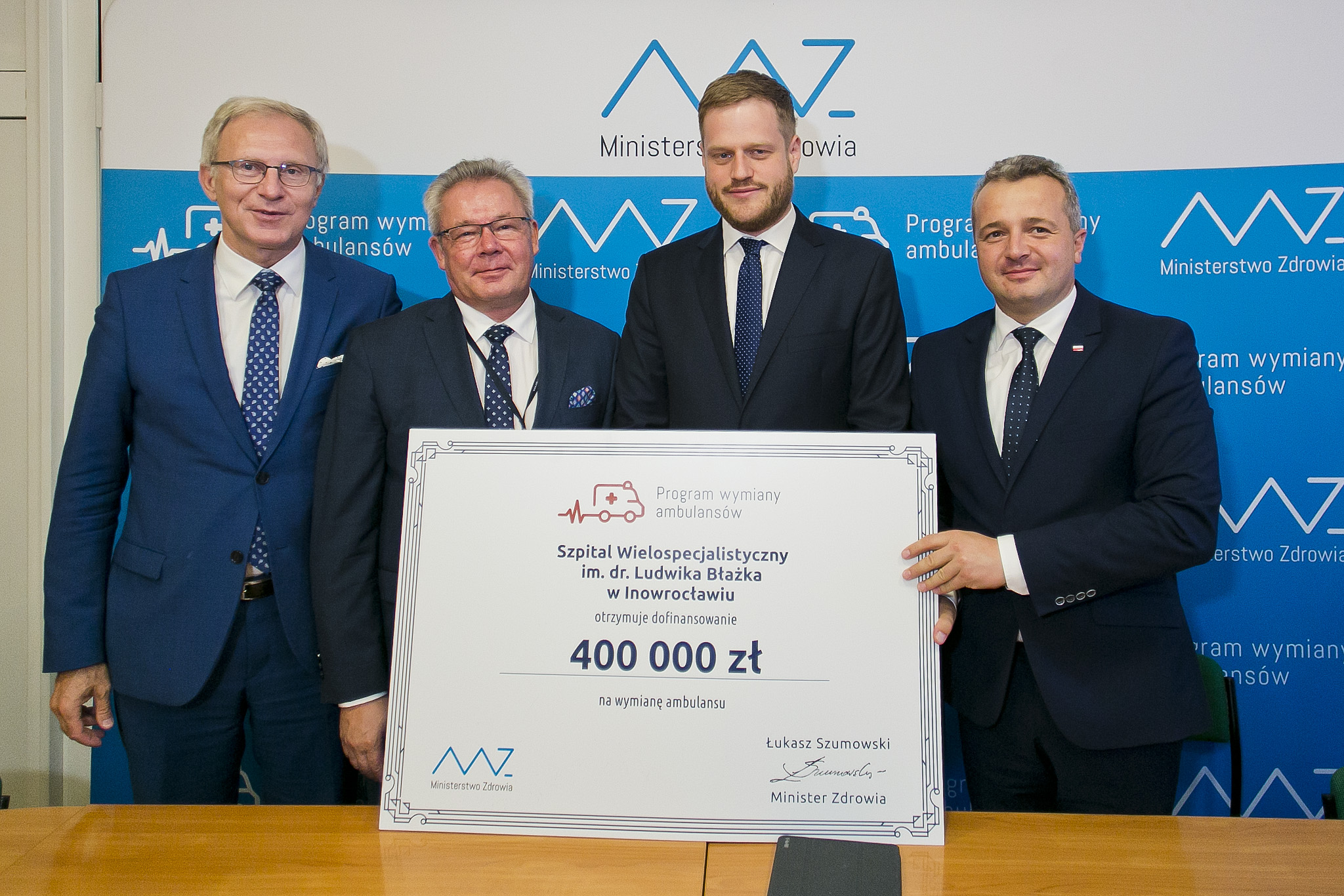 W ramach „Programu wymiany ambulansów" realizowanego przez Ministerstwo Zdrowia, w województwie kujawsko-pomorskim wymienionych zostanie 13 karetek. Jedną z placówek, która otrzyma 400 tys. zł dofinansowania na zakup nowoczesnej karetki jest Szpital Wielospecjalistyczny im. dr. Ludwika Błażka w Inowrocławiu.