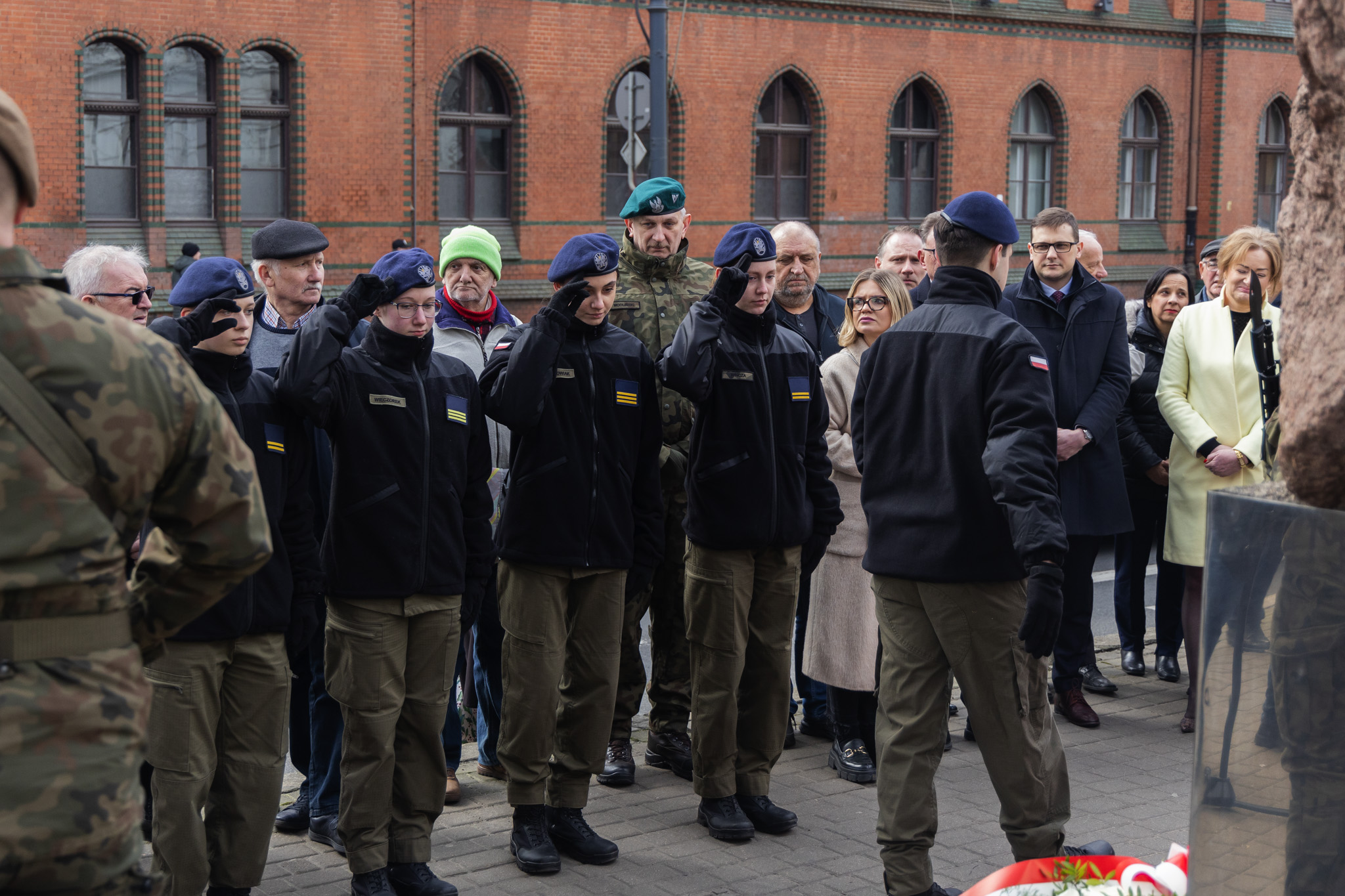 Uroczyste obchody rozpoczęto złożeniem kwiatów pod tablicą upamiętniającą wydarzenia Bydgoskiego Marca 1981 r. przed Kujawsko-Pomorskim Urzędem Wojewódzkim.
