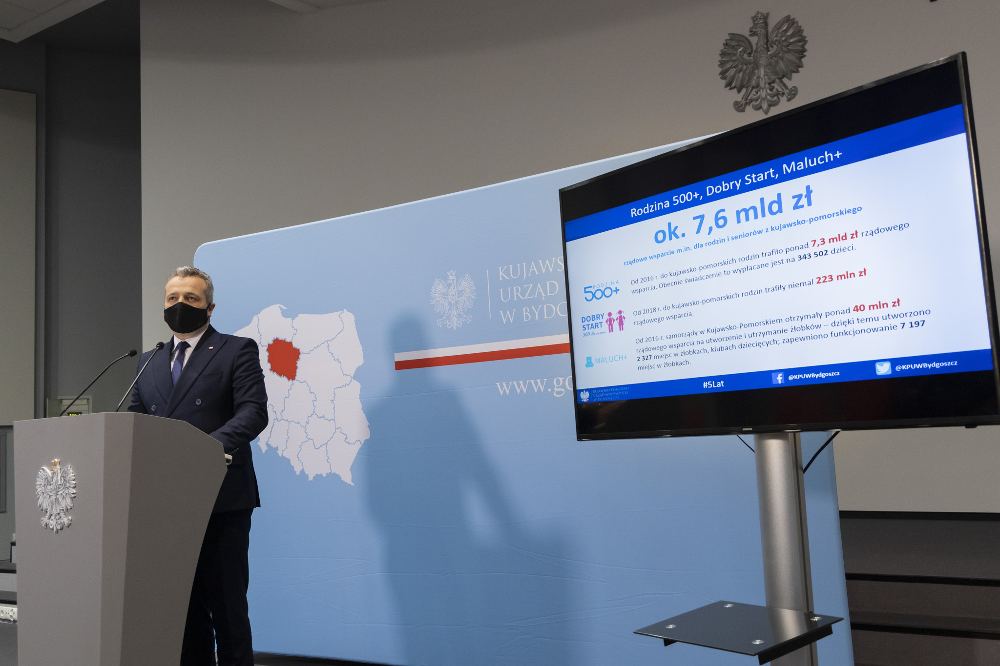 Pierwszym ważnym elementem działań rządu było wzmocnienie polskich rodzin. Około 7,6 mld zł rządowego wsparcia przeznaczono dla rodzin i seniorów z kujawsko-pomorskiego. Z samego tylko programu „Rodzina 500+” od 2016 r. do kujawsko-pomorskich rodzin trafiło ponad 7,3 mld zł rządowego wsparcia. Obecnie świadczenie to wypłacane jest na 343 502 dzieci.