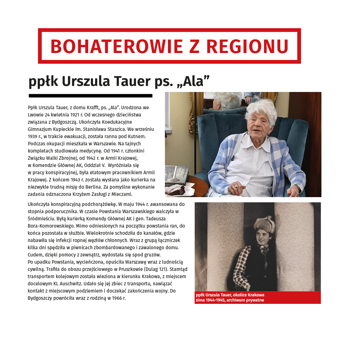 - Pani Ppłk Urszula Tauer, z domu Krafft, ps. „Ala”