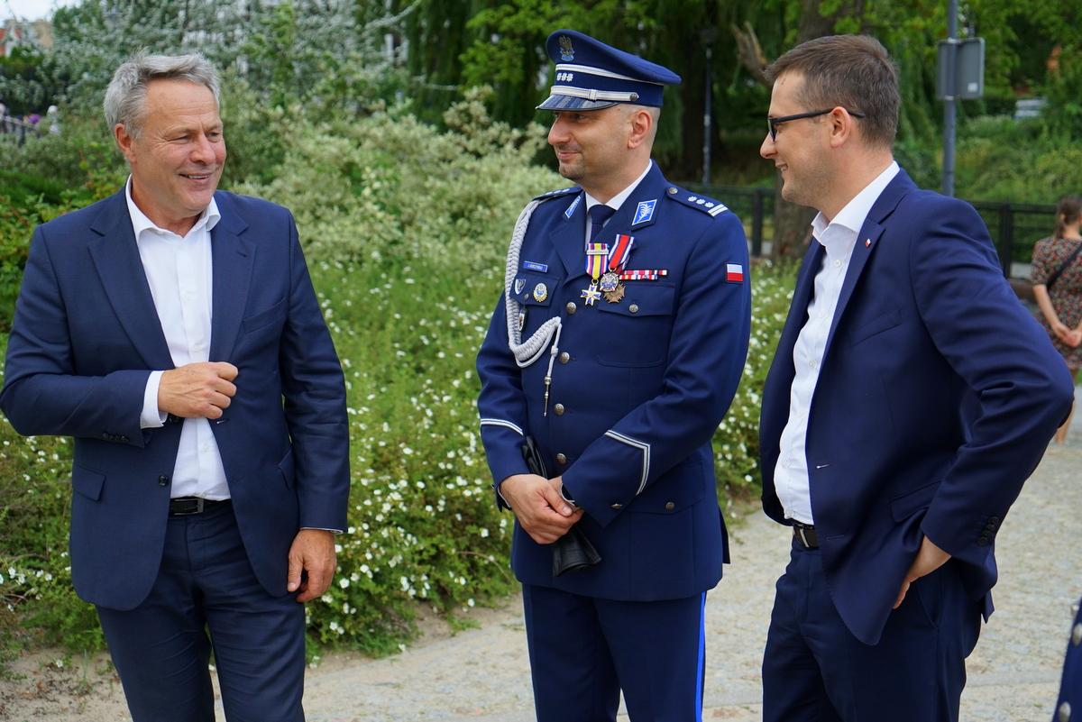 Ten wyraz zaufania obywateli i poczucie bezpieczeństwa nie bierze się z niczego, bierze się z codziennej pracy tysięcy osób w naszym województwie. Około 5000 osób, a w całej Polsce ok 100 000 osób, za to Państwu bardzo dziękuję. Dziękuję także przedstawicielom naszego garnizonu, którzy służą na granicy, którzy służą za granicą. I chciałbym powiedzieć jedno, nie ma sprawnego i silnego Państwa bez sprawnej i silnej policji. Bardzo dziękuję i wszystkiego dobrego z okazji święta Policji Państwowej