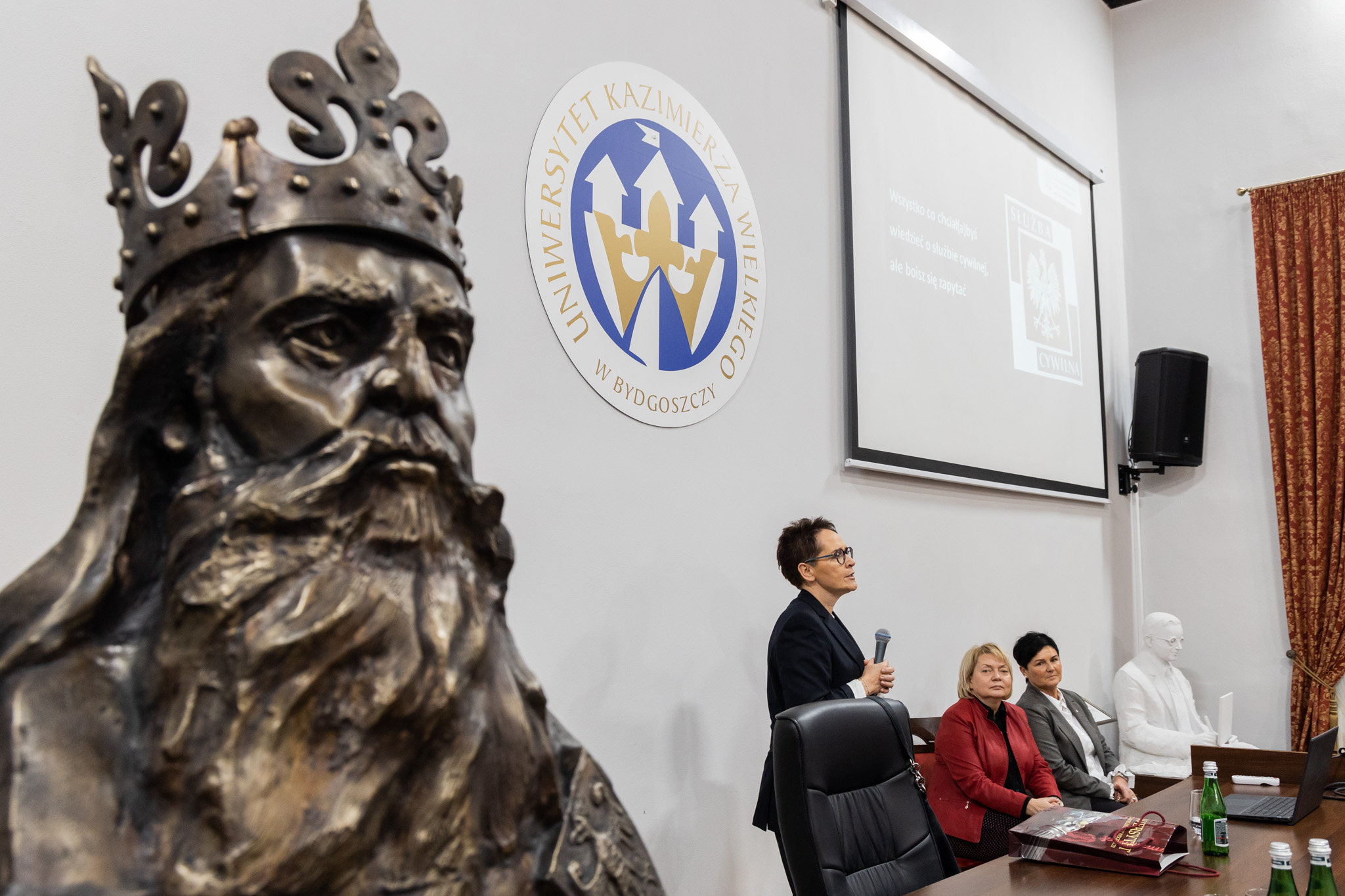 Przy okazji wizyty Szefowa Służby Cywilnej Minister Anita Noskowska-Piątkowska spotkała się ze studentami Wydział Prawa i Ekonomii Uniwersytetu Kazimierza Wielkiego.