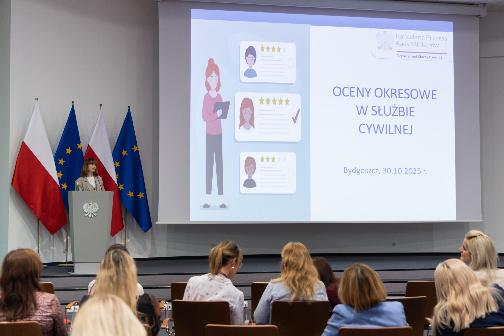 Szefowa Służby Cywilnej oraz eksperci Departamentu Służby Cywilnej KPRM spotkali się z kierownictwem urzędu, dyrektorami wydziałów i przedstawicielami komórek kadrowych urzędów terenowych z całego województwa kujawsko-pomorskiego. Podczas spotkania rozmawiano m.in. o warunkach pracy, pozyskiwaniu nowych kadr, zatrzymywaniu doświadczonych pracowników oraz dostępności urzędów dla obywateli. Omówiono także najważniejsze zagadnienia z obszaru funkcjonowania służby cywilnej, w tym: