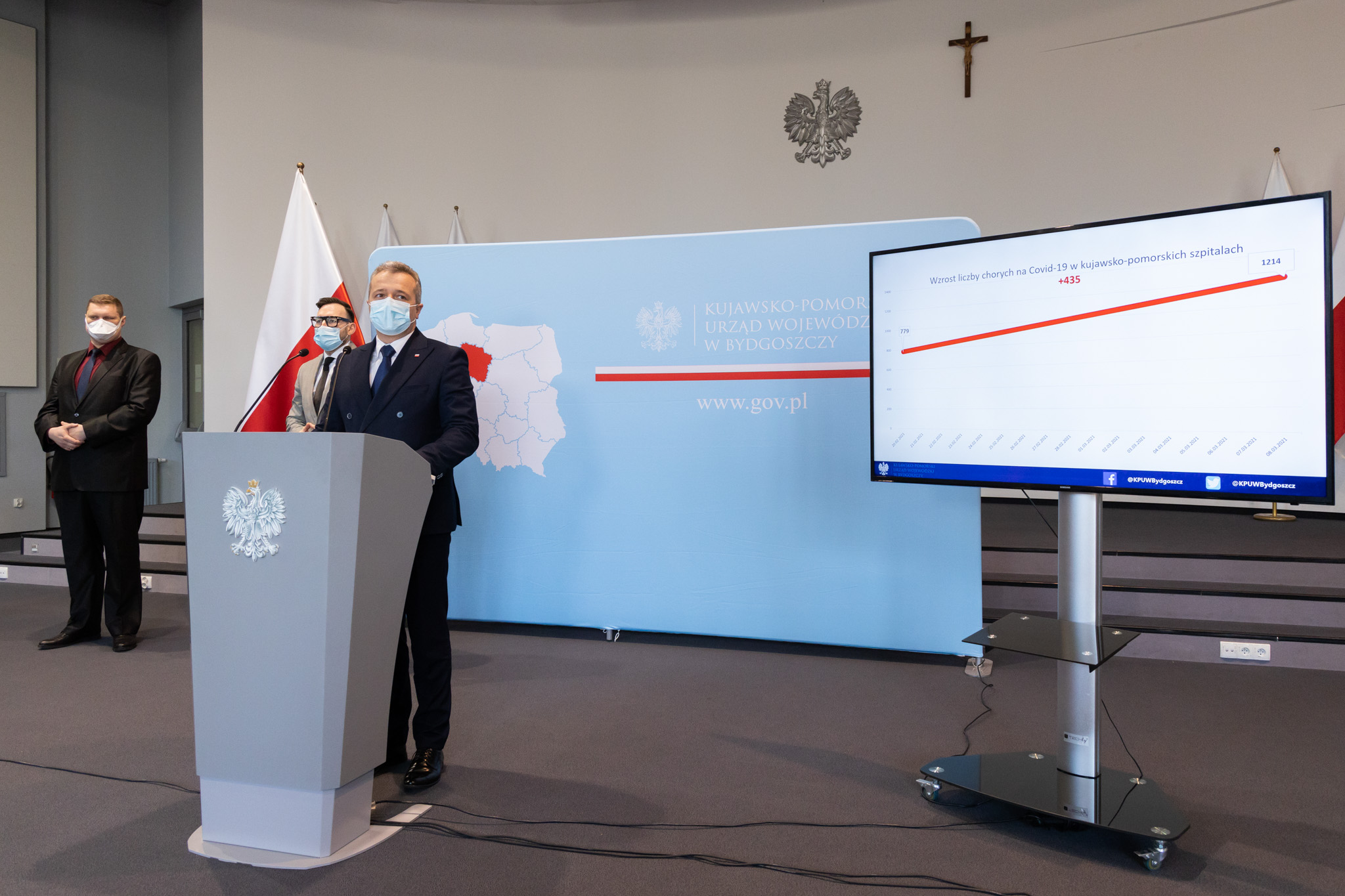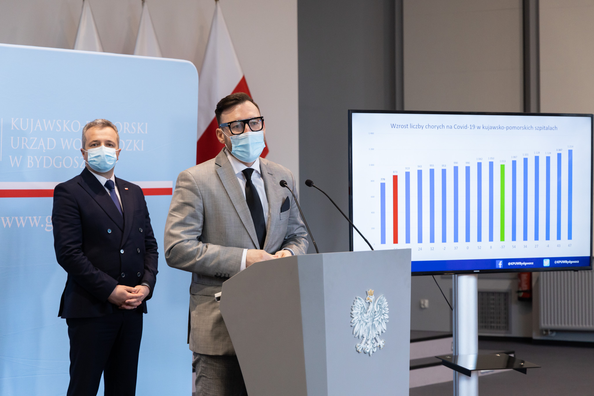 W trakcie poniedziałkowej konferencji prasowej wojewoda kujawsko-pomorski oraz wojewódzki konsultant w dziedzinie chorób zakaźnych zaapelowali do środowiska medycznego o wsparcie personelu, który pracuje na szpitalnych oddziałach „covidowych”. Medycy mogą zgłaszać się do pracy za pośrednictwem urzędu wojewódzkiego.