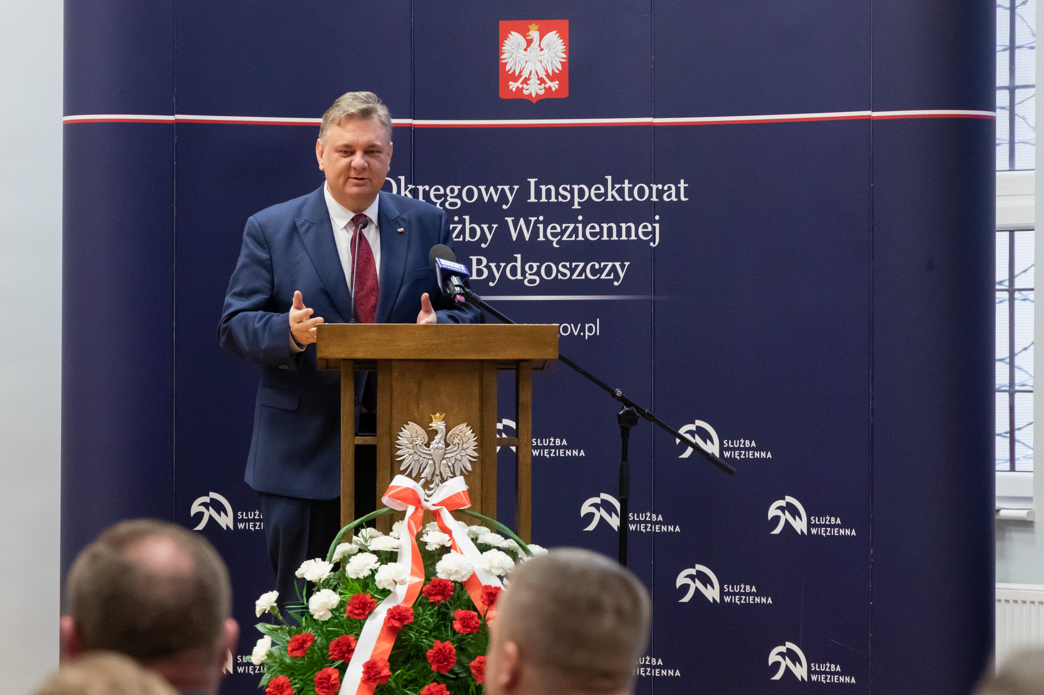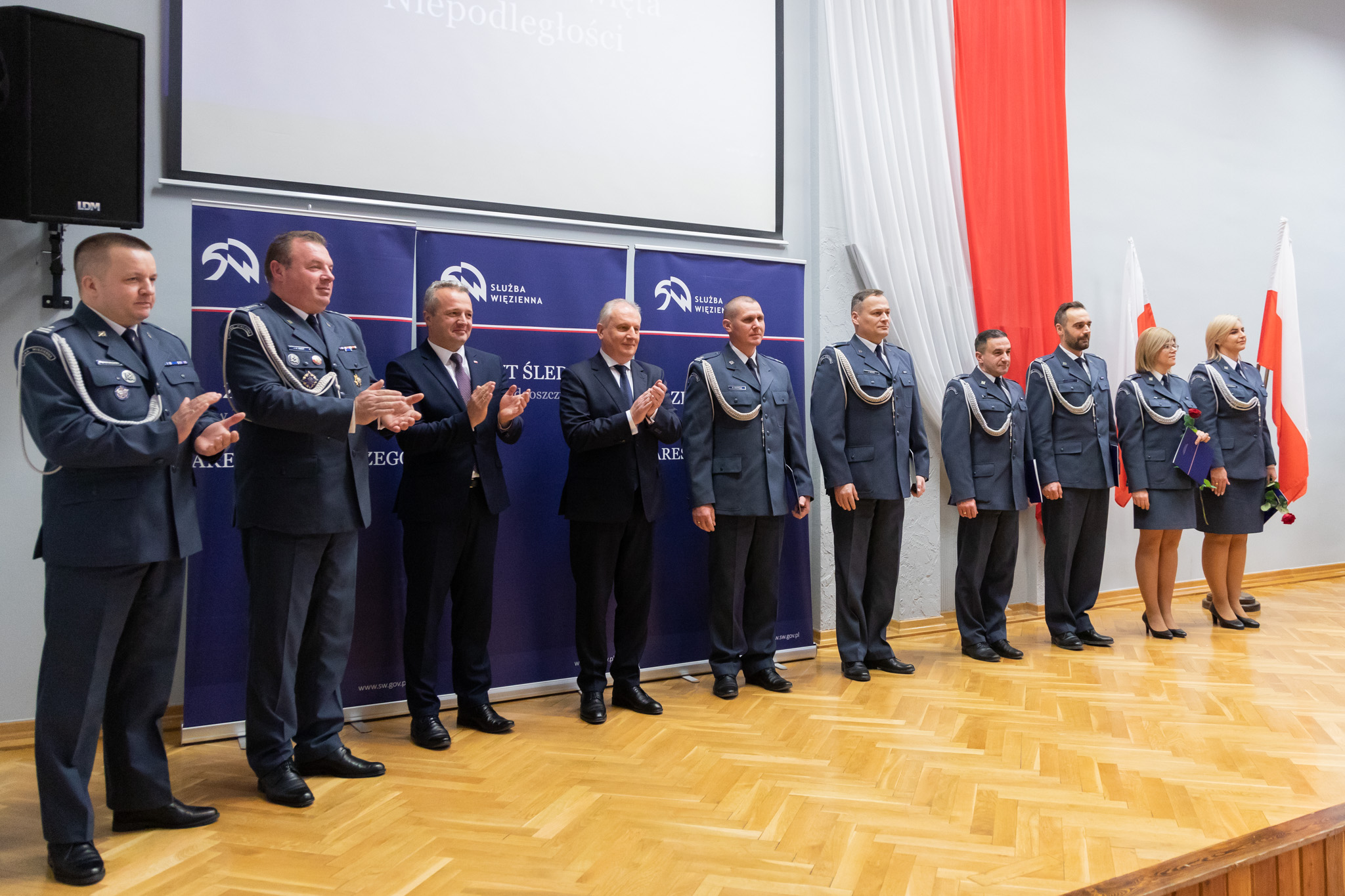 Z okazji Święta Niepodległości w auli Aresztu Śledczego w Bydgoszczy odbyła się odprawa Służby Więziennej. W uroczystości uczestniczył m.in. Wojewoda Kujawsko-Pomorski Mikołaj Bogdanowicz.