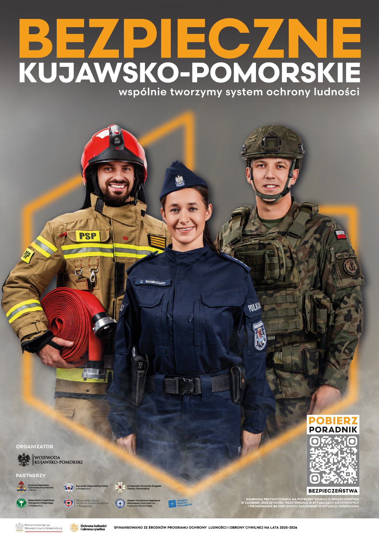 Wszystkie materiały dotyczące kampanii oraz materiały do pobrania dostępne są na stronie: https://www.gov.pl/web/uw-kujawsko-pomorski/bezpieczne-kujawsko-pomorskie-wspolnie-budujemy-system-ochrony-ludnosci2