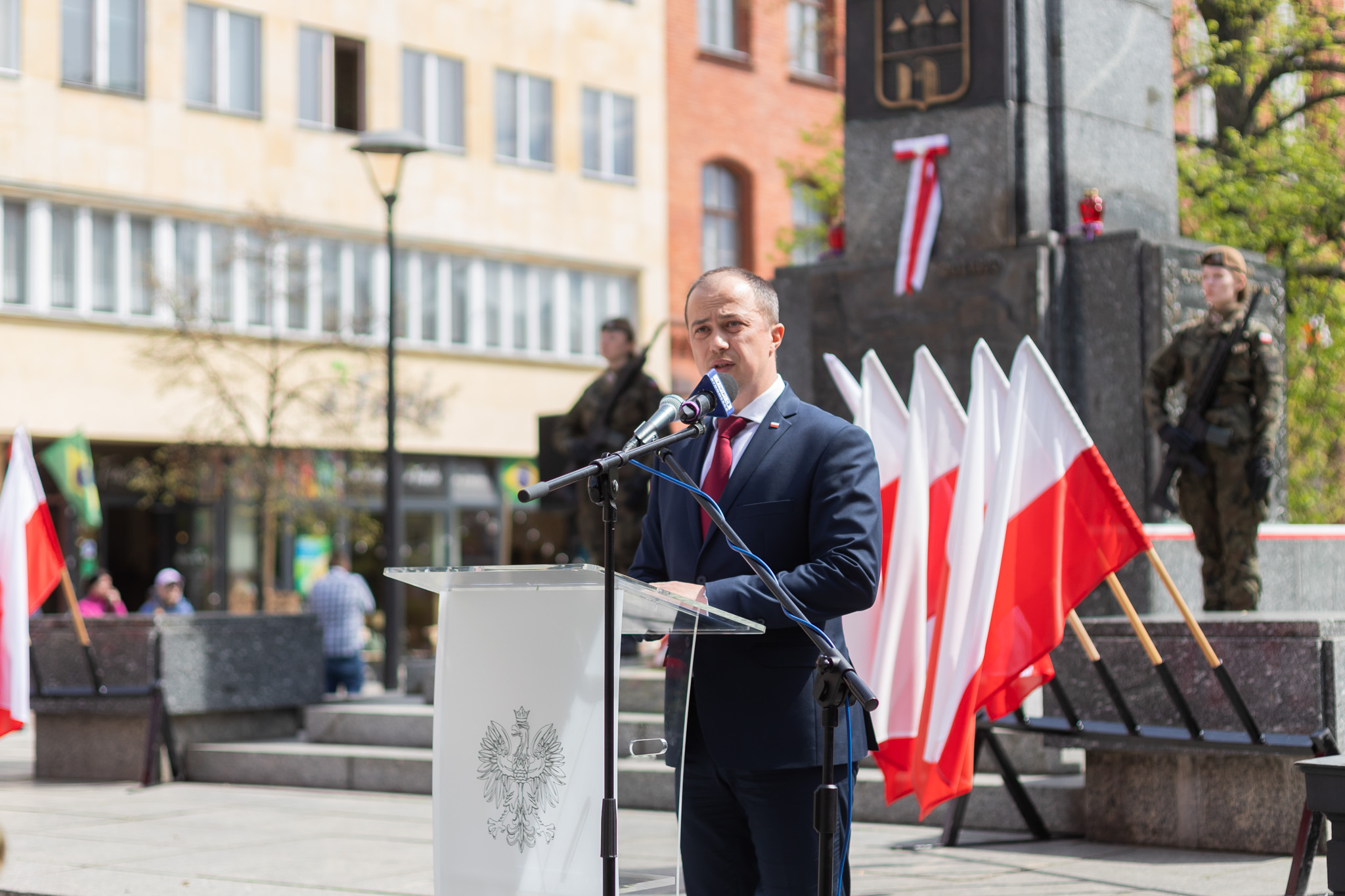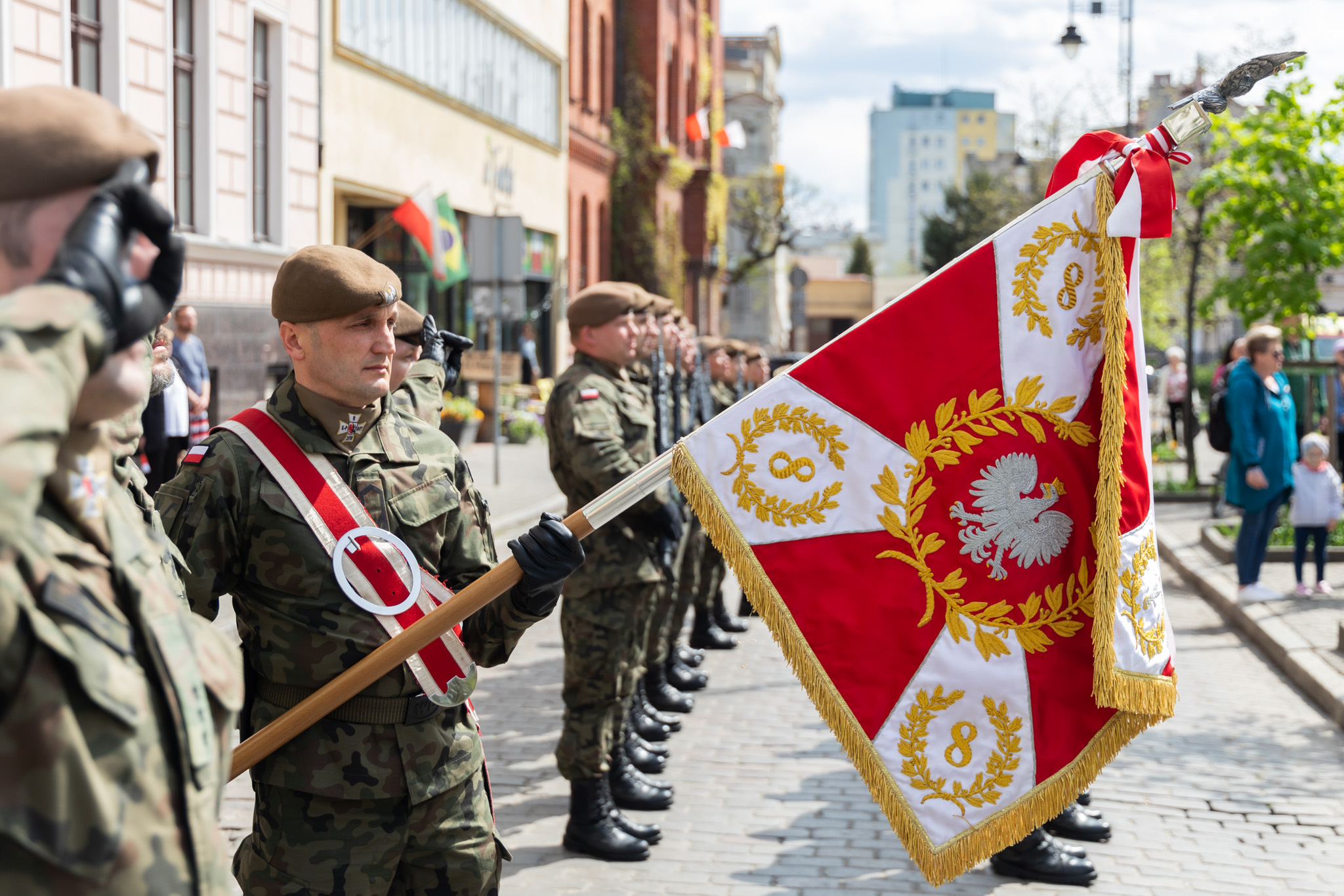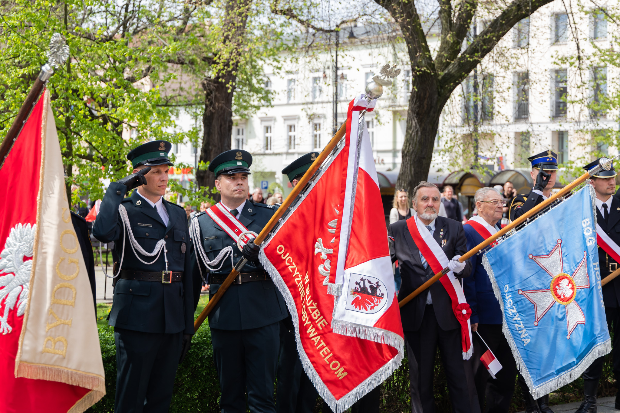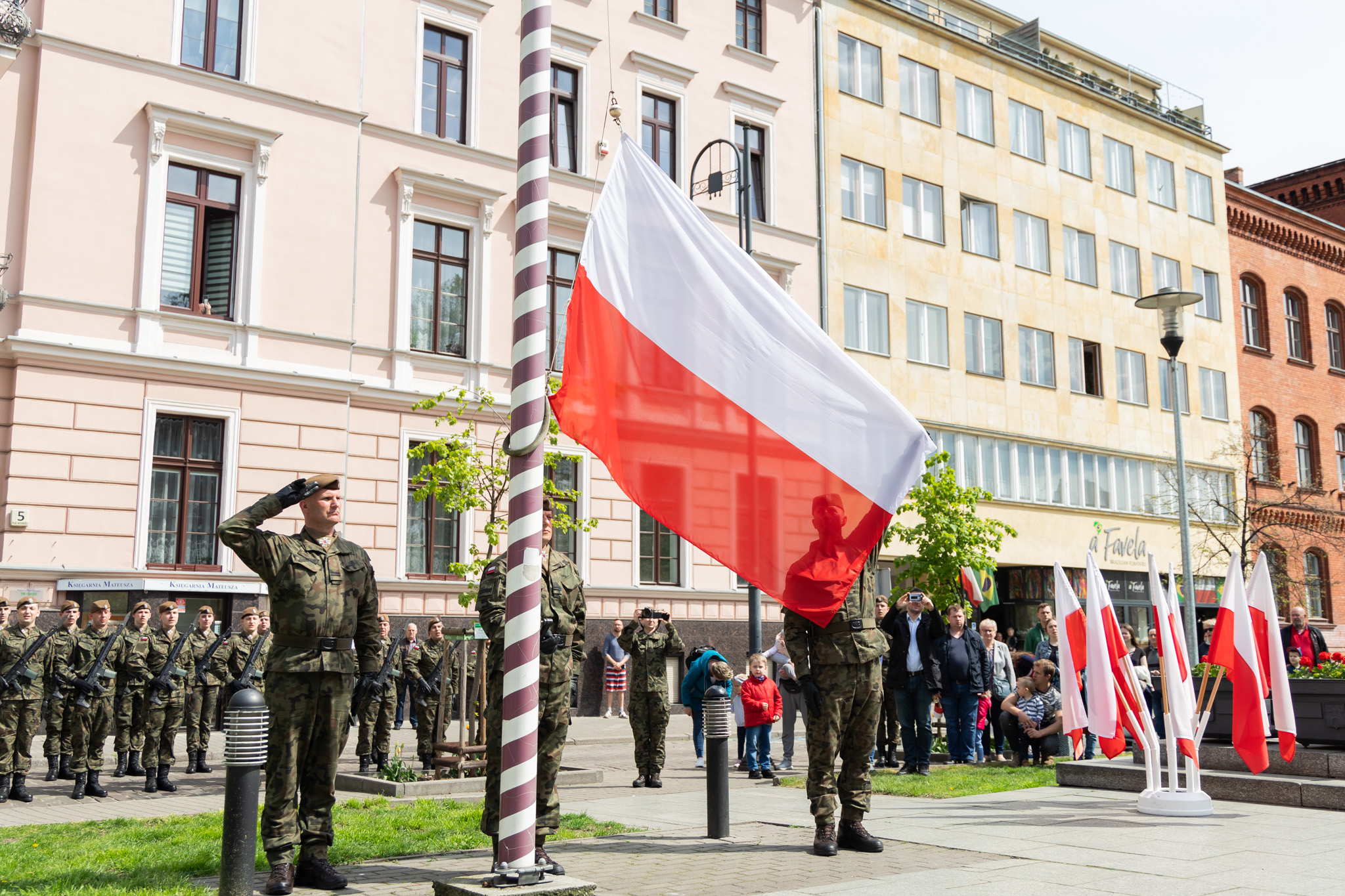Widok biało-czerwonej flagi podniesionej na maszt przez żołnierzy Wojska Polskiego zawsze napawa dumą i wzruszeniem - mówił wicewojewoda Radosław Kempinski podczas obchodów Dnia Flagi Rzeczypospolitej Polskiej w Bydgoszczy.