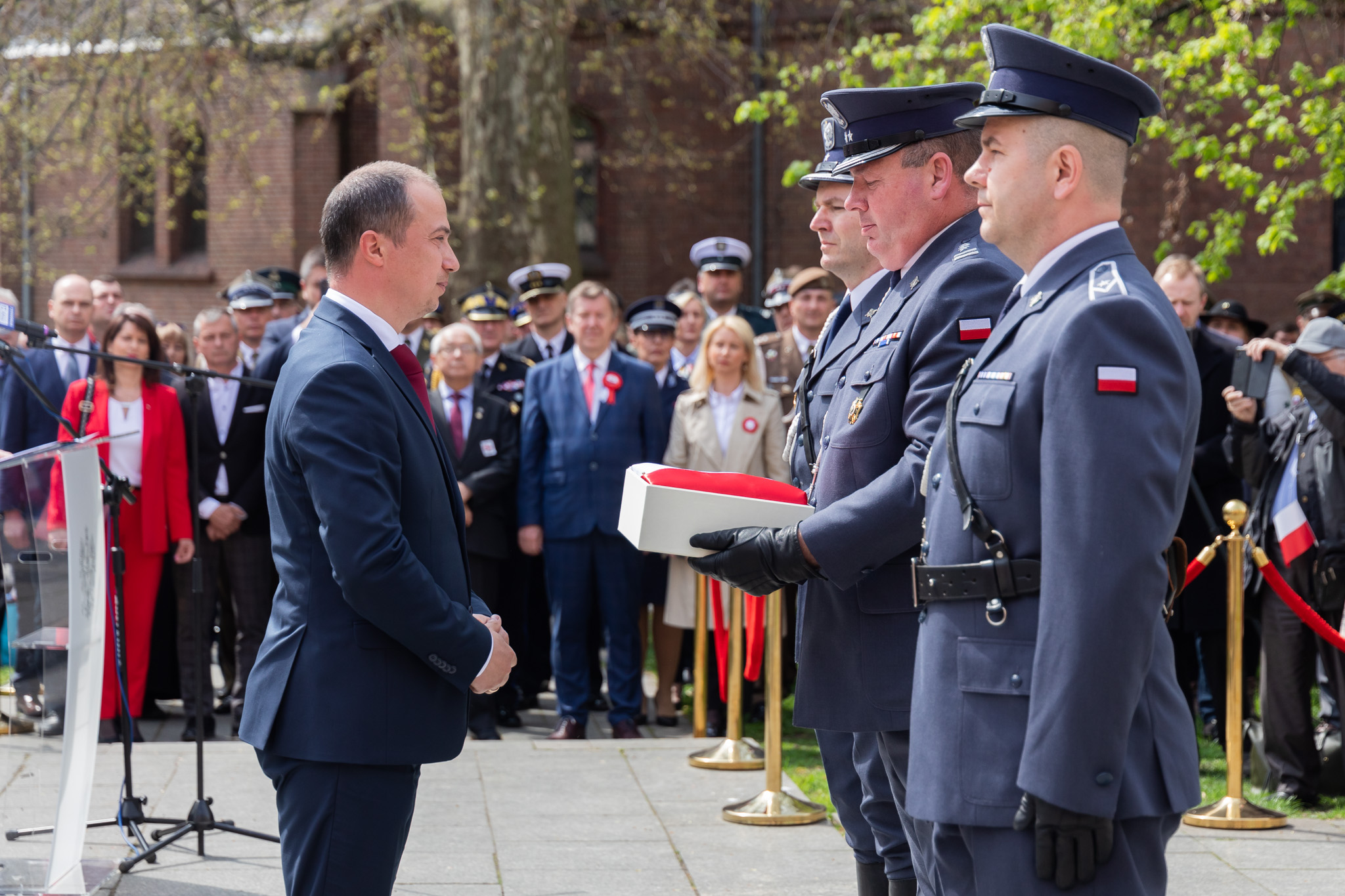 Zgodnie z tradycją obchodów Dnia Flagi Rzeczypospolitej Polskiej, wicewojewoda Radosław Kempinski przekazał flagę przedstawicielom Służby Więziennej, którą reprezentował Dyrektor Okręgowy Służby Więziennej w Bydgoszczy płk Andrzej Gniot.