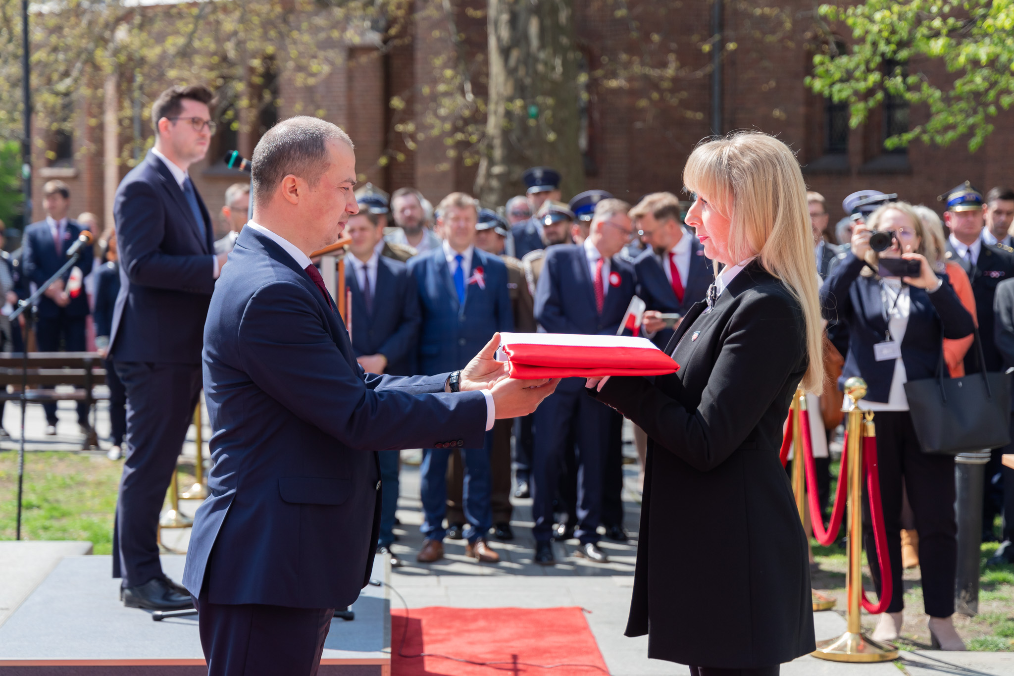 Przy dźwiękach hymnu państwowego Biało-Czerwona została uroczyście wciągnięta na maszt. Następnie wicewojewoda przekazał polską flagę Dyrektorowi Krajowej Administracji Skarbowej Beacie Adamowicz.