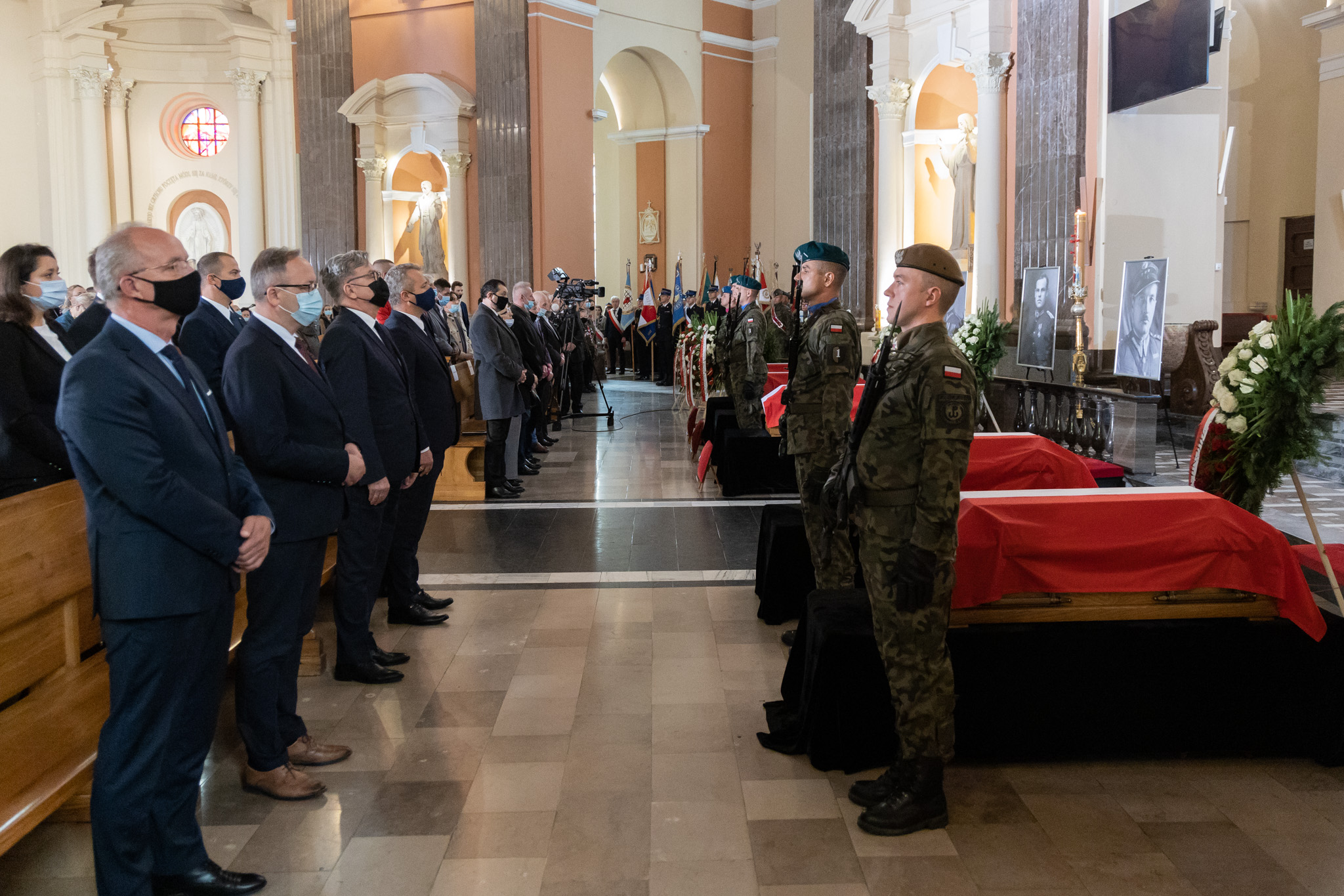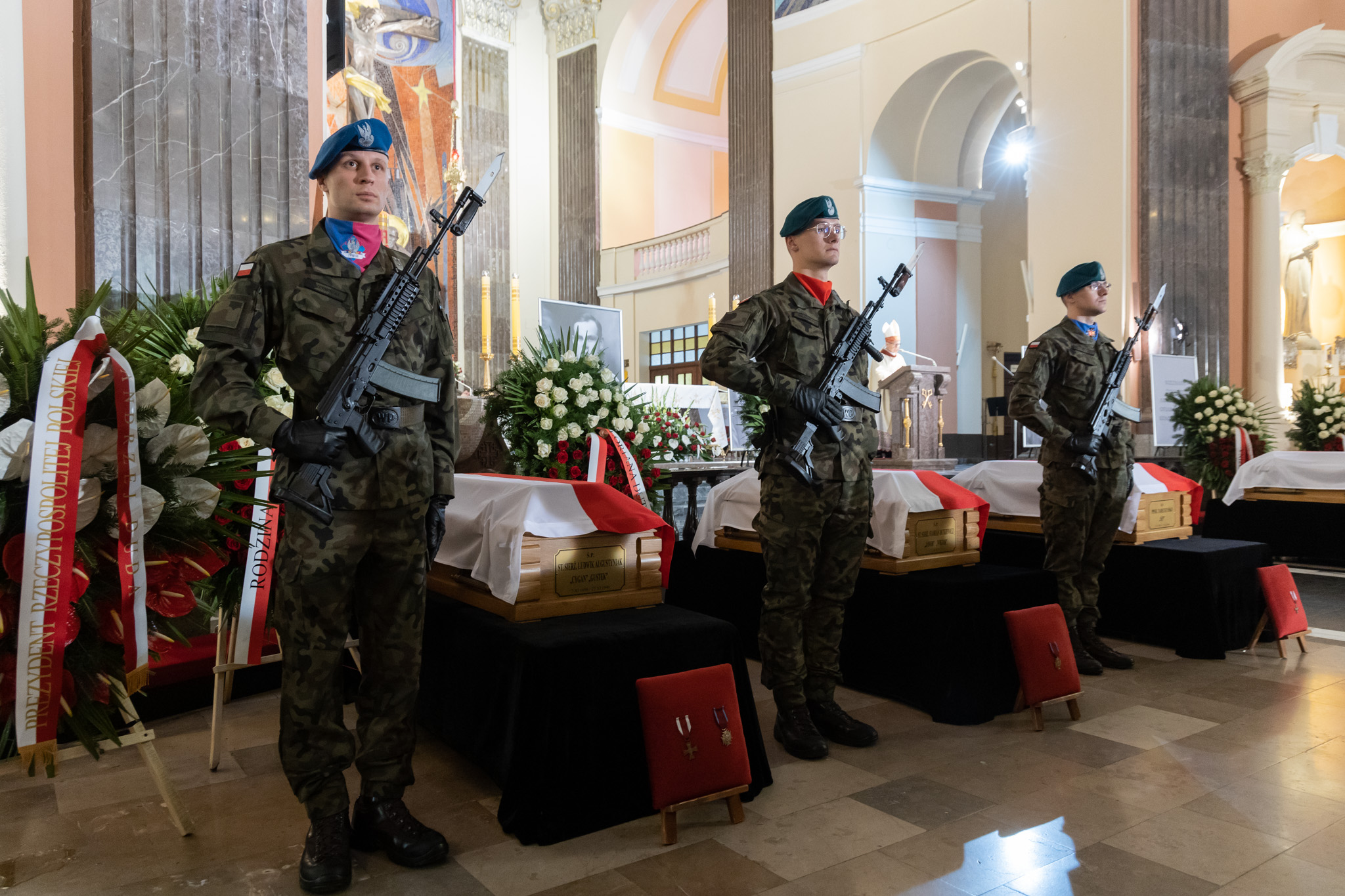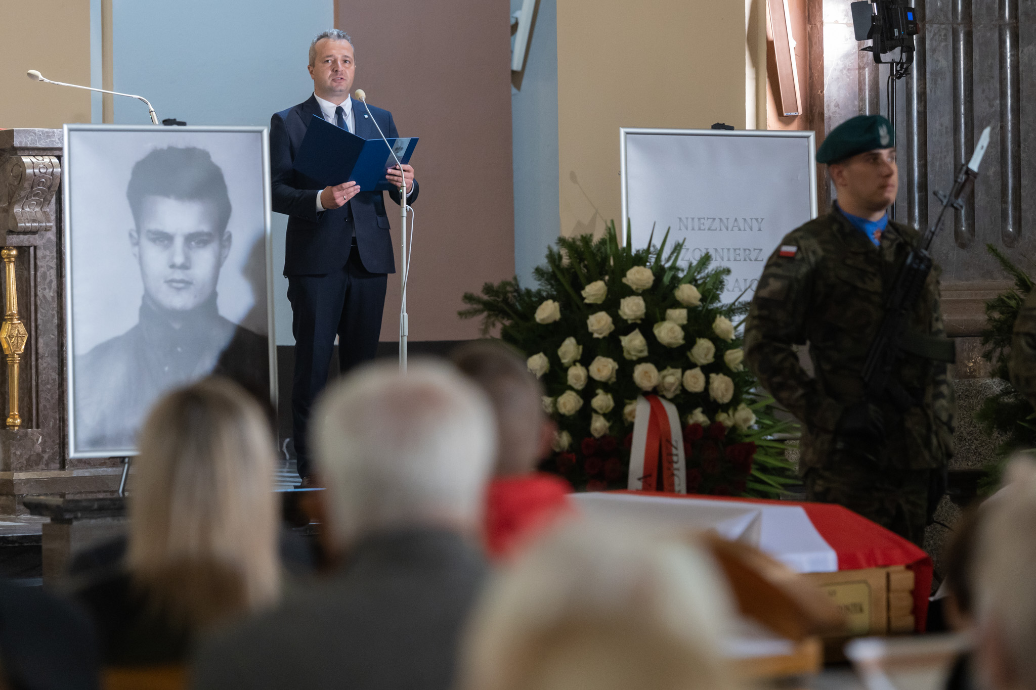 Być może milczenie byłoby najstosowniejszym sposobem zachowania w obliczu tych trumien, ale chcemy przecież uczcić Żołnierzy Niezłomnych, Żołnierzy Wyklętych. Patrzą na nas z tych portretów: śp. Tadeusz, Ludwik, Florian, Zbigniew i ten, którego tożsamości jeszcze nie znamy do końca. I tym udziałem w dzisiejszej uroczystości wyznajemy naszą wiarę, że Chrystus miłosierny za ich cierpienia przyjął ich w bramach raju