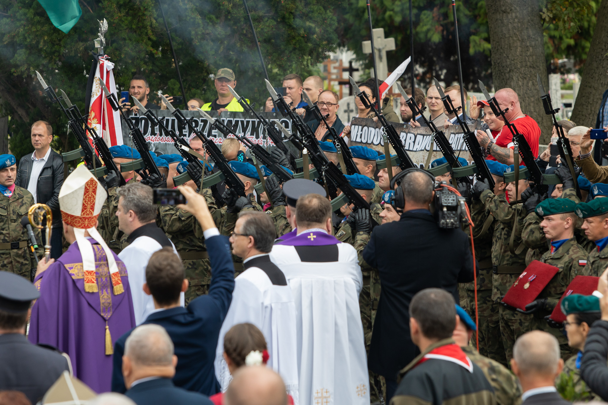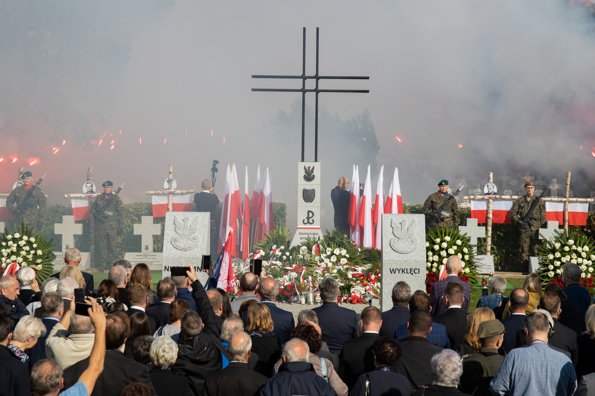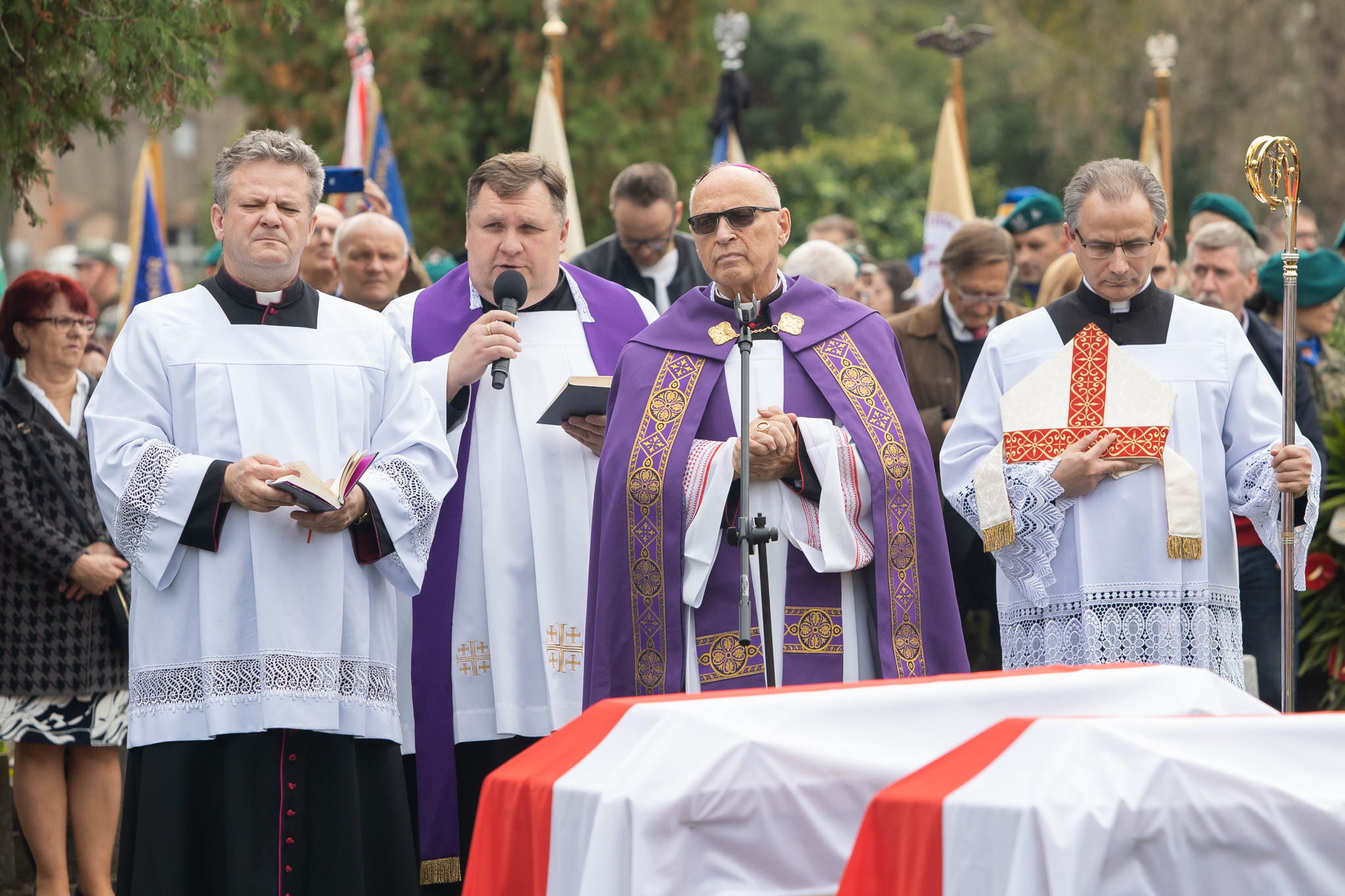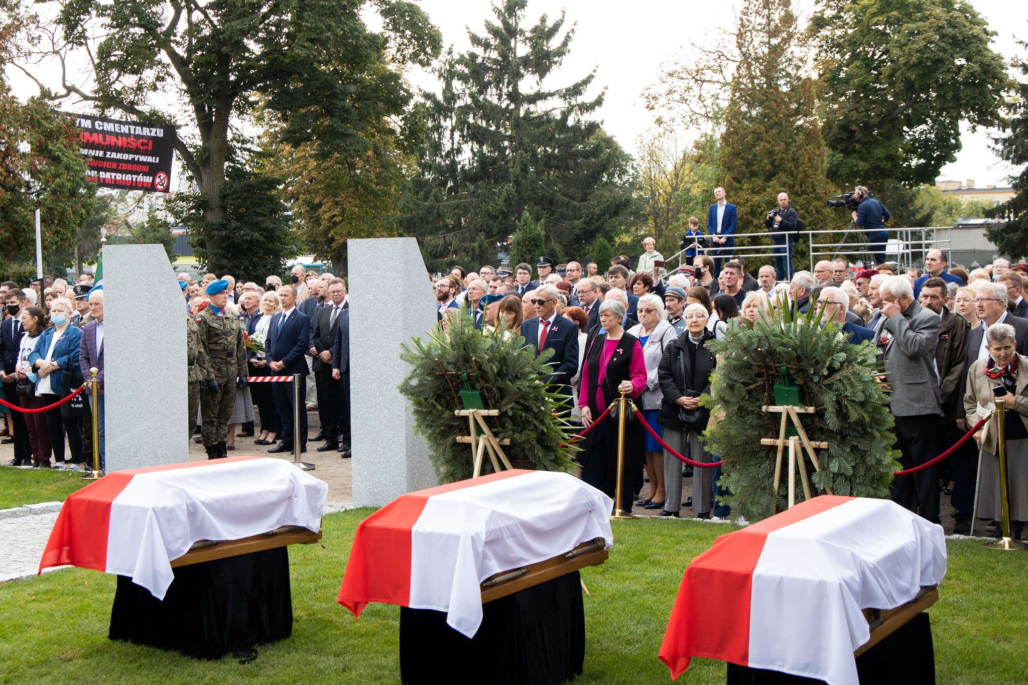 Być może milczenie byłoby najstosowniejszym sposobem zachowania w obliczu tych trumien, ale chcemy przecież uczcić Żołnierzy Niezłomnych, Żołnierzy Wyklętych. Patrzą na nas z tych portretów: śp. Tadeusz, Ludwik, Florian, Zbigniew i ten, którego tożsamości jeszcze nie znamy do końca. I tym udziałem w dzisiejszej uroczystości wyznajemy naszą wiarę, że Chrystus miłosierny za ich cierpienia przyjął ich w bramach raju