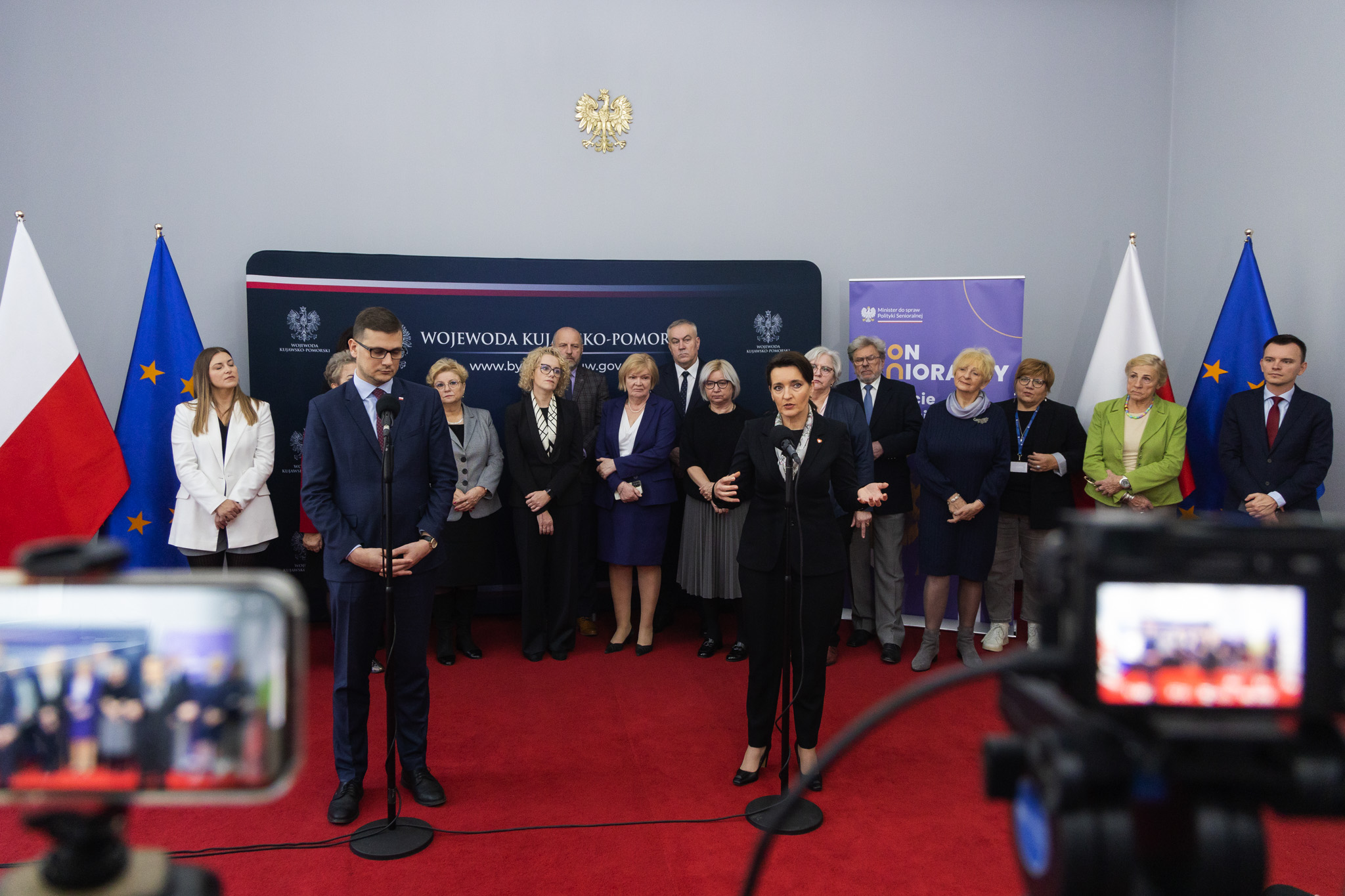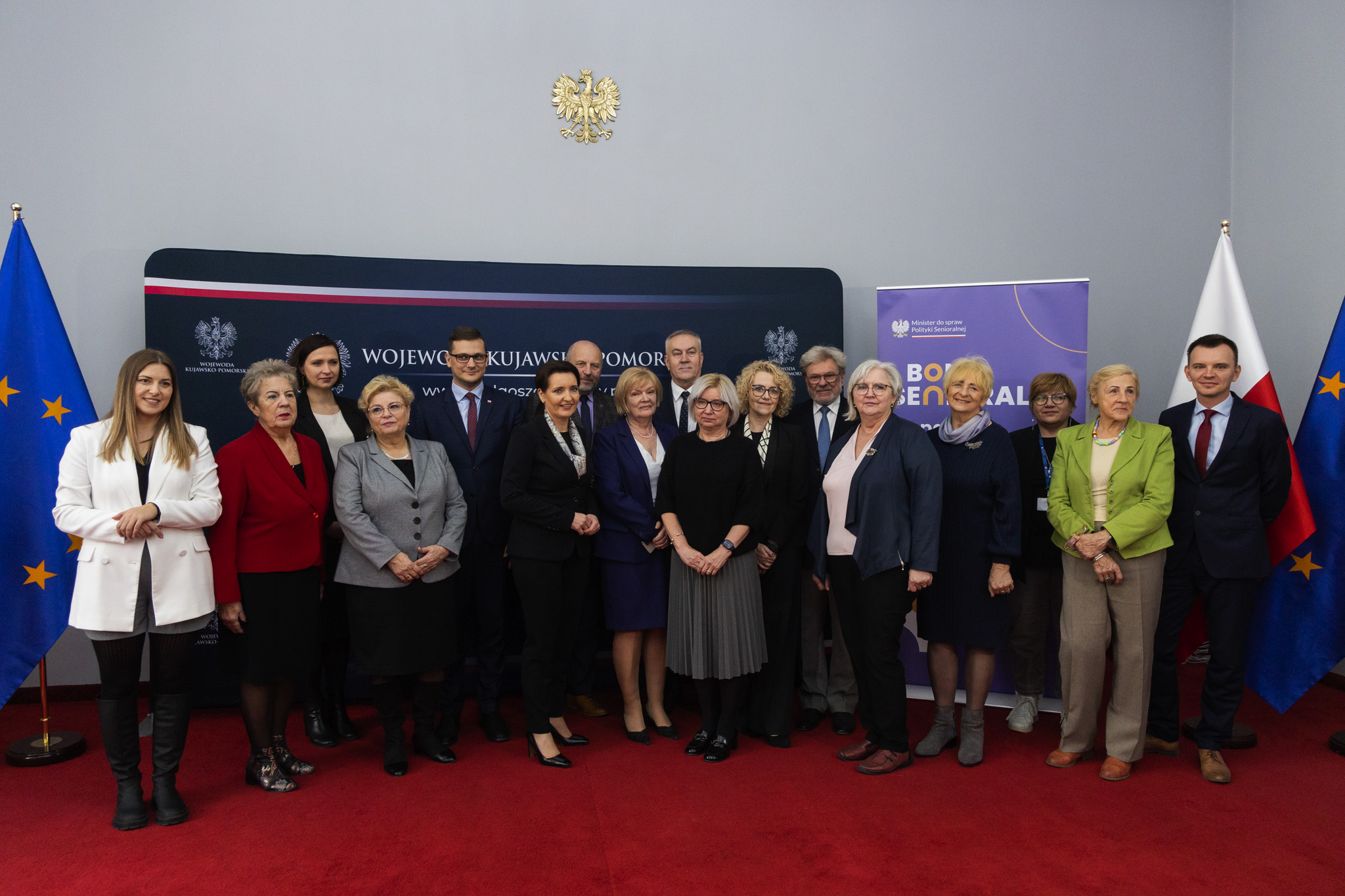 W Kujawsko-Pomorskim Urzędzie Wojewódzkim odbyły się, z udziałem Pani Minister ds. Polityki Senioralnej Marzeny Okły-Drewnowicz, konsultacje dotyczące ustawy o bonie senioralnym, który jest odpowiedzią na niezagospodarowaną przestrzeń pomiędzy pomocą społeczną i świadczeniami realizowanymi w jej ramach, a systemem ochrony zdrowia, w tym w szczególności opieką długoterminową.