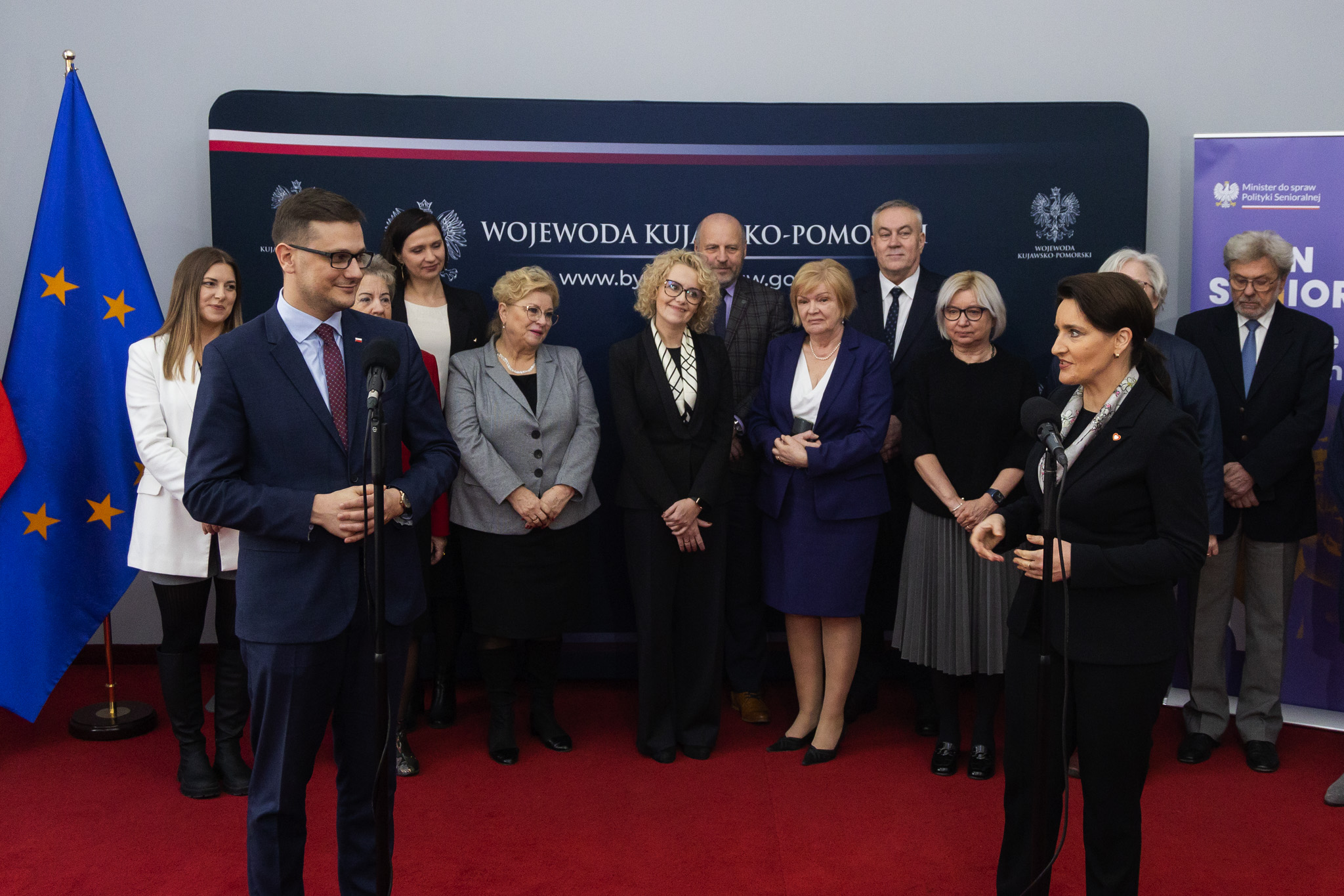 Wspólnie z Panią Minister wręczyliśmy powołania Zespołowi do spraw Polityki Senioralnej, działającemu przy Wojewodzie Kujawsko-Pomorskim. Zaprosiłem do współpracy osoby, które reprezentują, zarówno seniorów z poszczególnych miast, Rad Seniorów, ale także z poziomu sejmiku województwa oraz instytucji zajmujących się seniorami, ośrodków opieki społecznej, czy też biur aktywności społecznej z rozmaitych samorządów naszego województwa. Staramy się, aby ten głos z całego województwa był słyszalny, żebyśmy mogli mądre rekomendacje czy też wnioski kierować do Pani Minister