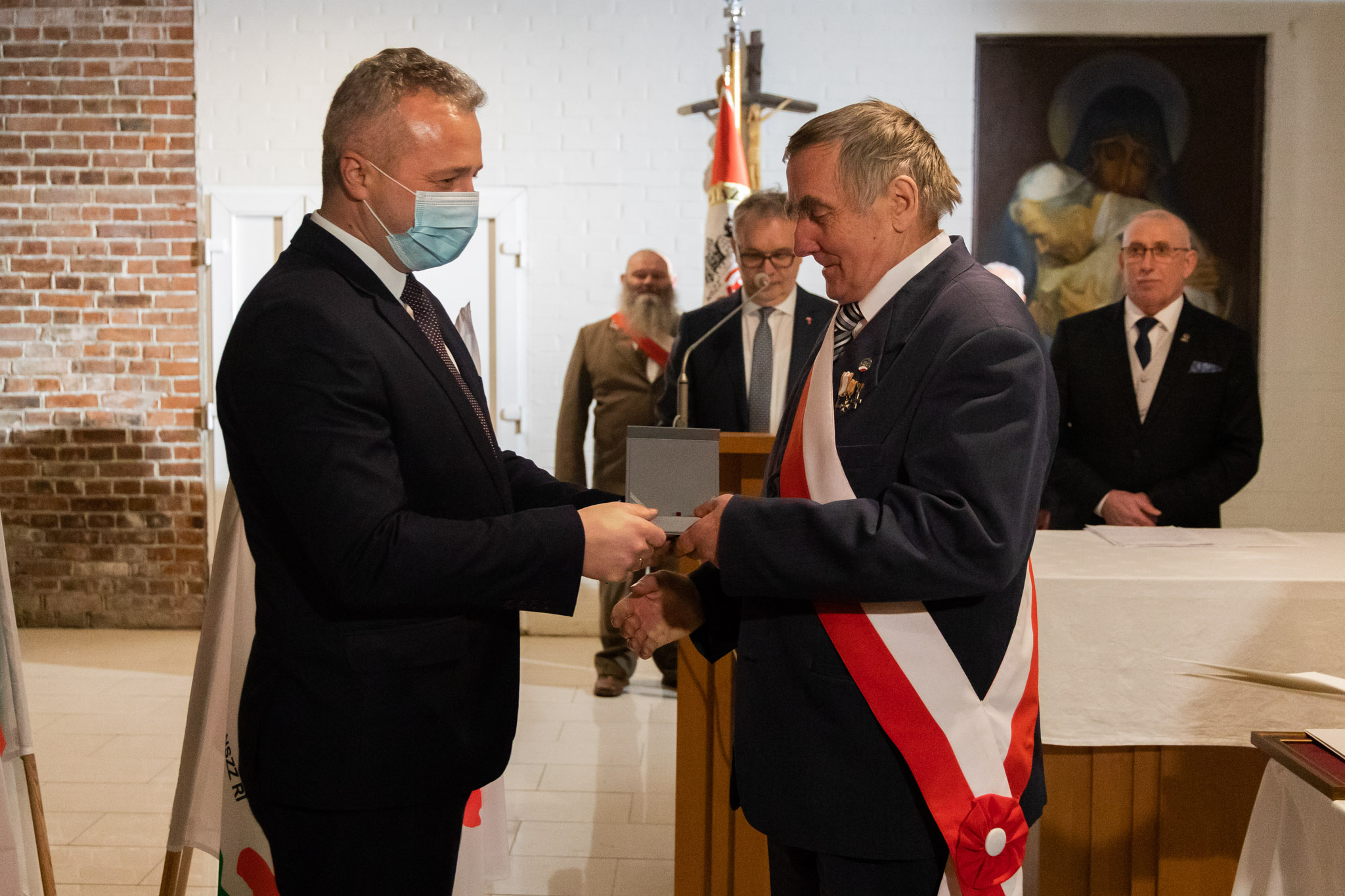Mikołaj Bogdanowicz wręczył także prof. Mirosławowi Golonowi Statuetkę Wojewody Kujawsko-Pomorskiego w podziękowaniu za trud odkłamywania i utrwalania historii. Drugą statuetkę przekazał bydgoskim Jezuitom na ręce Superiora o. Piotra Twardeckiego.