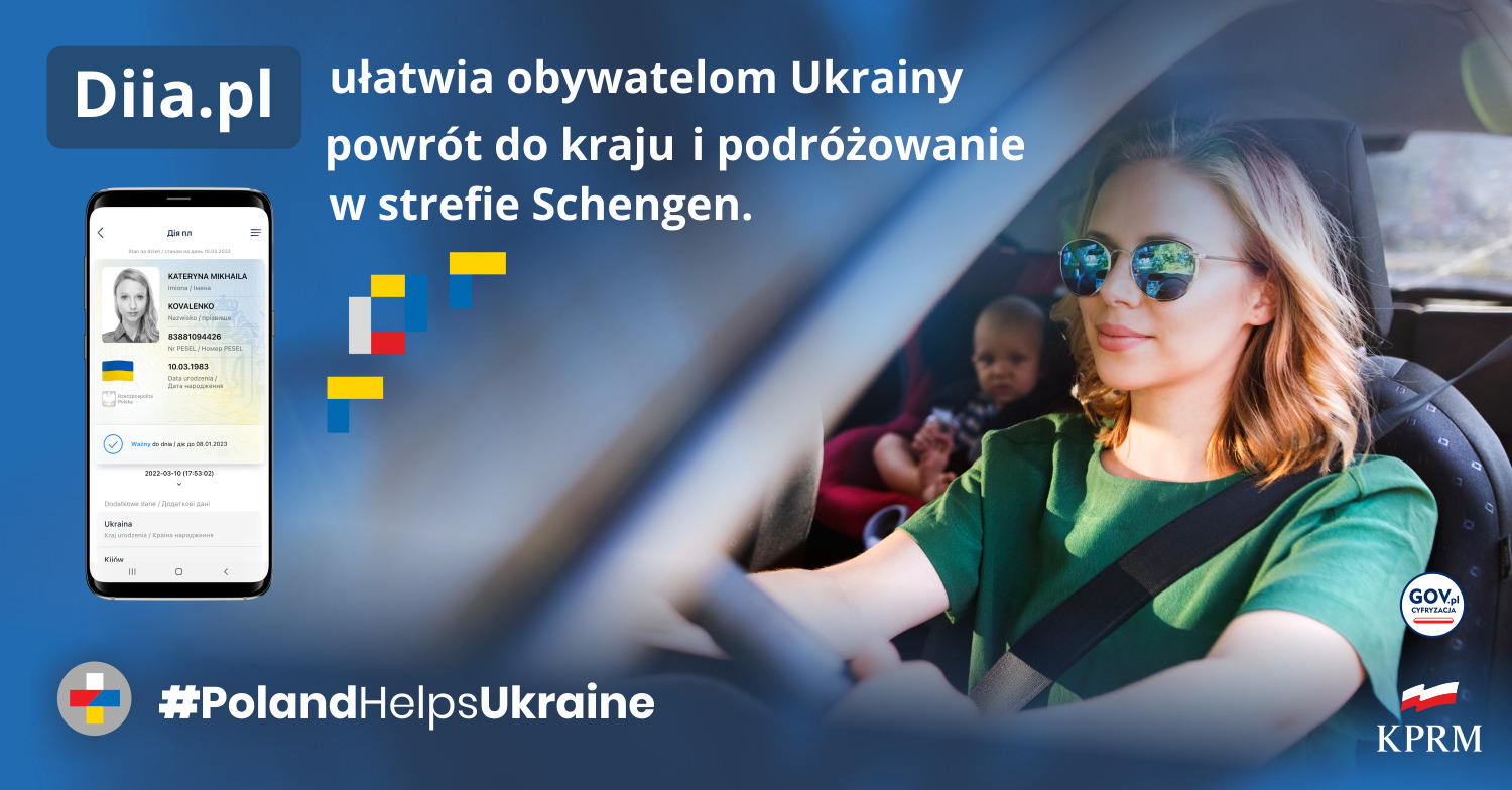 Dokument DIIA.pl umożliwia obywatelom Ukrainy przekraczanie granic zewnętrznych (np. powrót na Ukrainę z zamiarem ponownego przyjazdu do Polski) oraz podróżowanie w strefie Schengen przez 90 dni (w okresie 180 dni);
