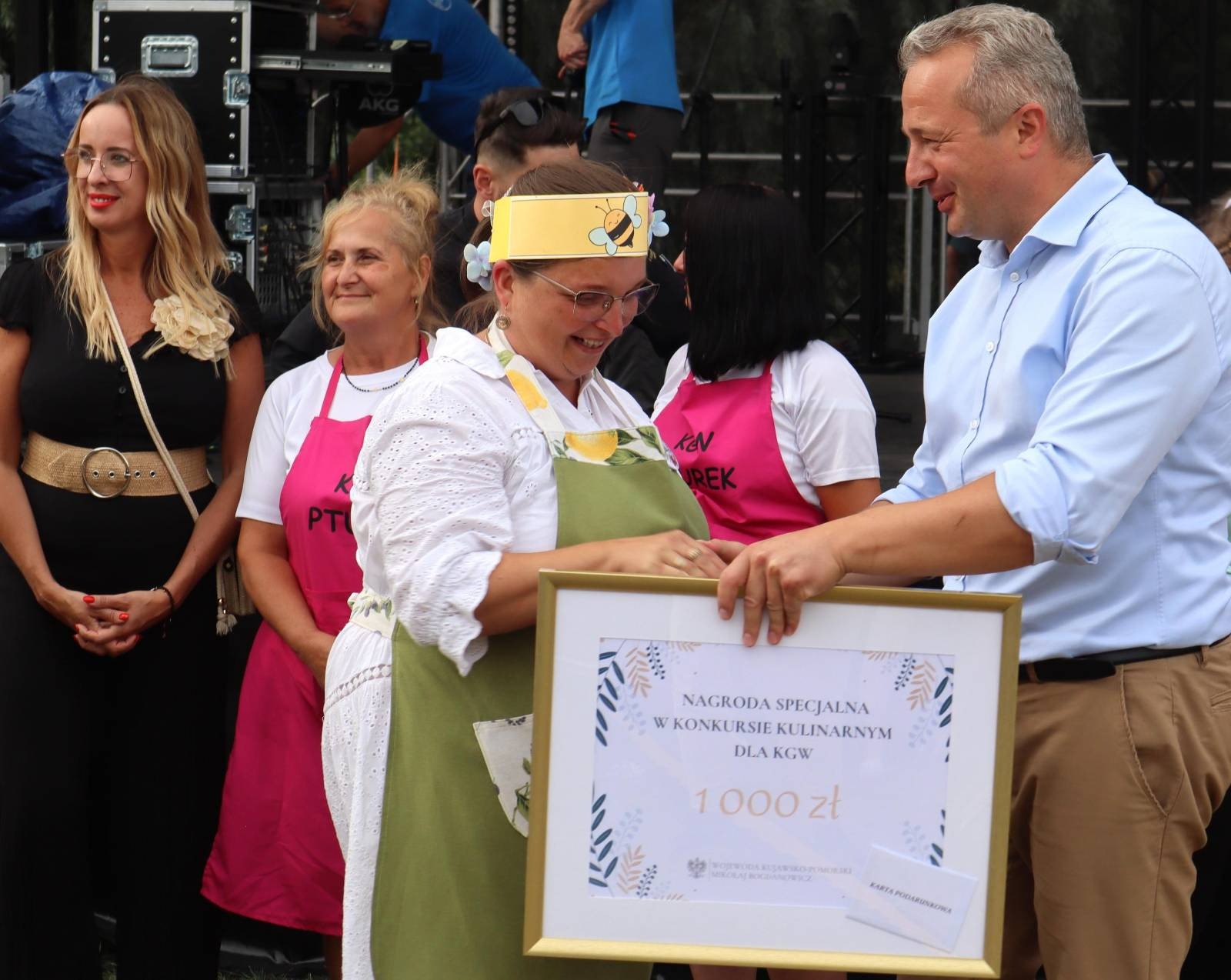 Zwycięzcy konkursów – pasieka Sam Miód ze Żnina, pasieka Miodowa Polana z Pakości i KGW Piechcin – otrzymali także nagrody specjalne Wojewody Kujawsko-Pomorskiego Mikołaja Bogdanowicza.