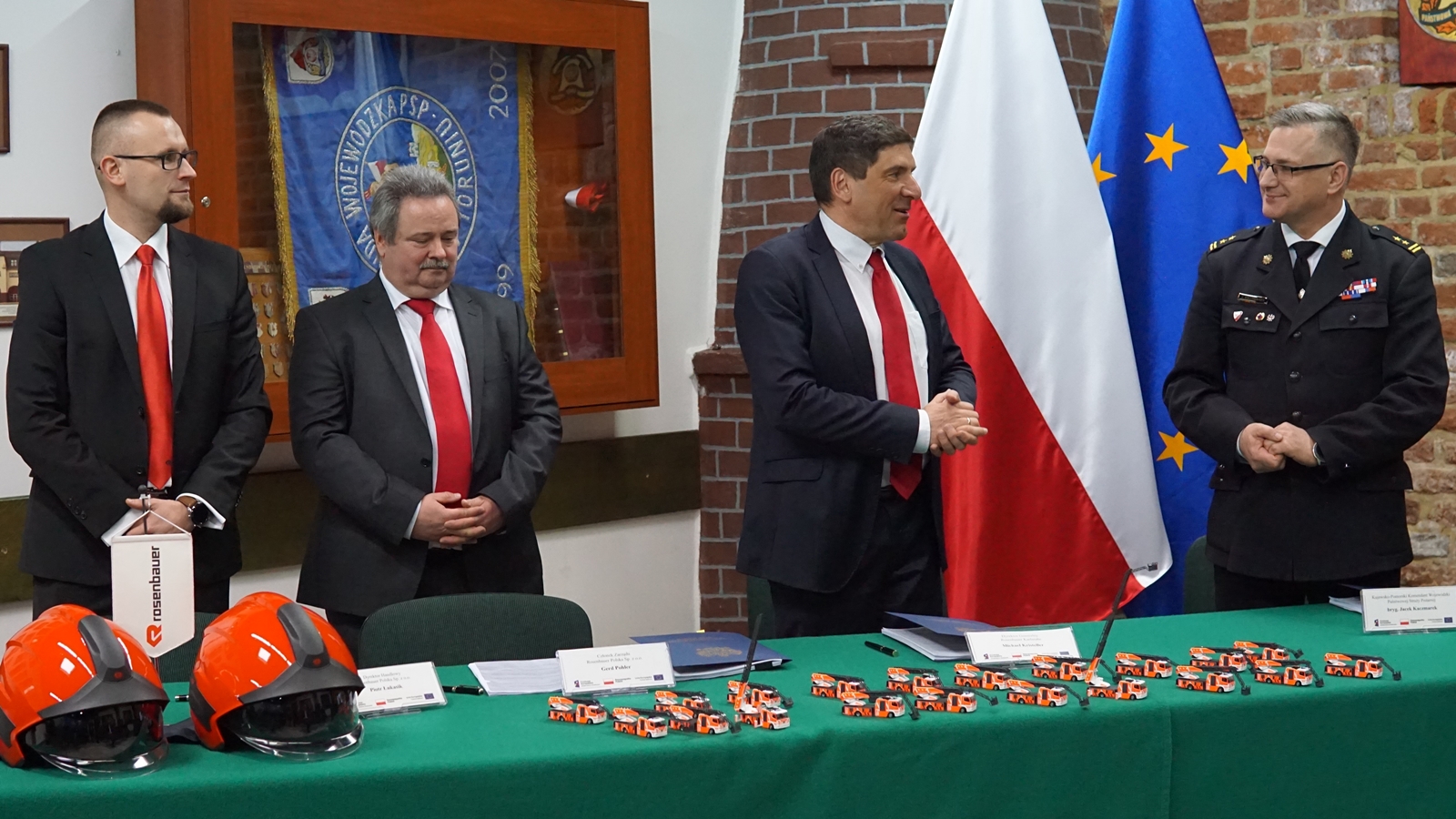 Dzisiaj, w Komendzie Wojewódzkiej Państwowej Straży Pożarnej w Toruniu Wojewoda Kujawsko-Pomorski Mikołaj Bogdanowicz uczestniczył w podpisaniu umowy na zakup 20 samochodów specjalistycznych o wartości blisko 49 mln. zł.
