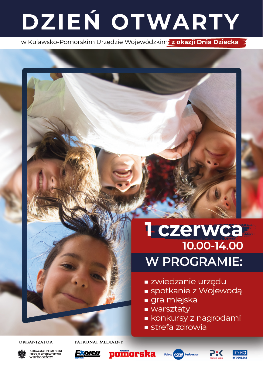 Kujawsko-Pomorski Urząd Wojewódzki zaprasza na Dzień Otwarty, z okazji Dnia Dziecka. 1 czerwca, od godziny 10:00 do 14:00 drzwi Urzędu będą otwarte dla wszystkich - zarówno małych, jak i dużych dzieci oraz ich rodziców i opiekunów.