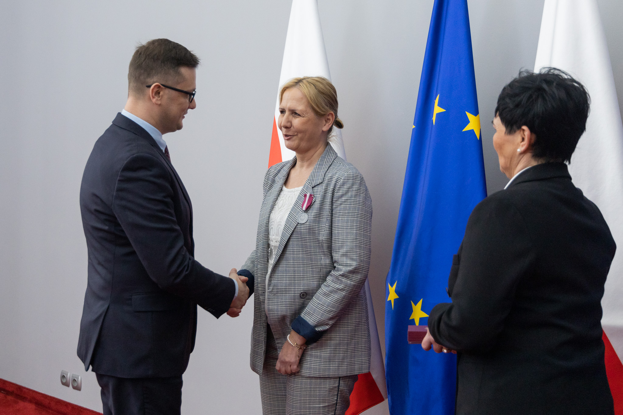 Podczas dzisiejszej uroczystości Wojewoda Kujawsko-Pomorski Michał Sztybel wręczył odznaczenia państwowe pracownikom służby cywilnej. W wydarzeniu wzięli udział Dyrektor Generalna Kujawsko-Pomorskiego Urzędu Wojewódzkiego w Bydgoszczy Katarzyna Wesołowska oraz dyrektorzy wydziałów.