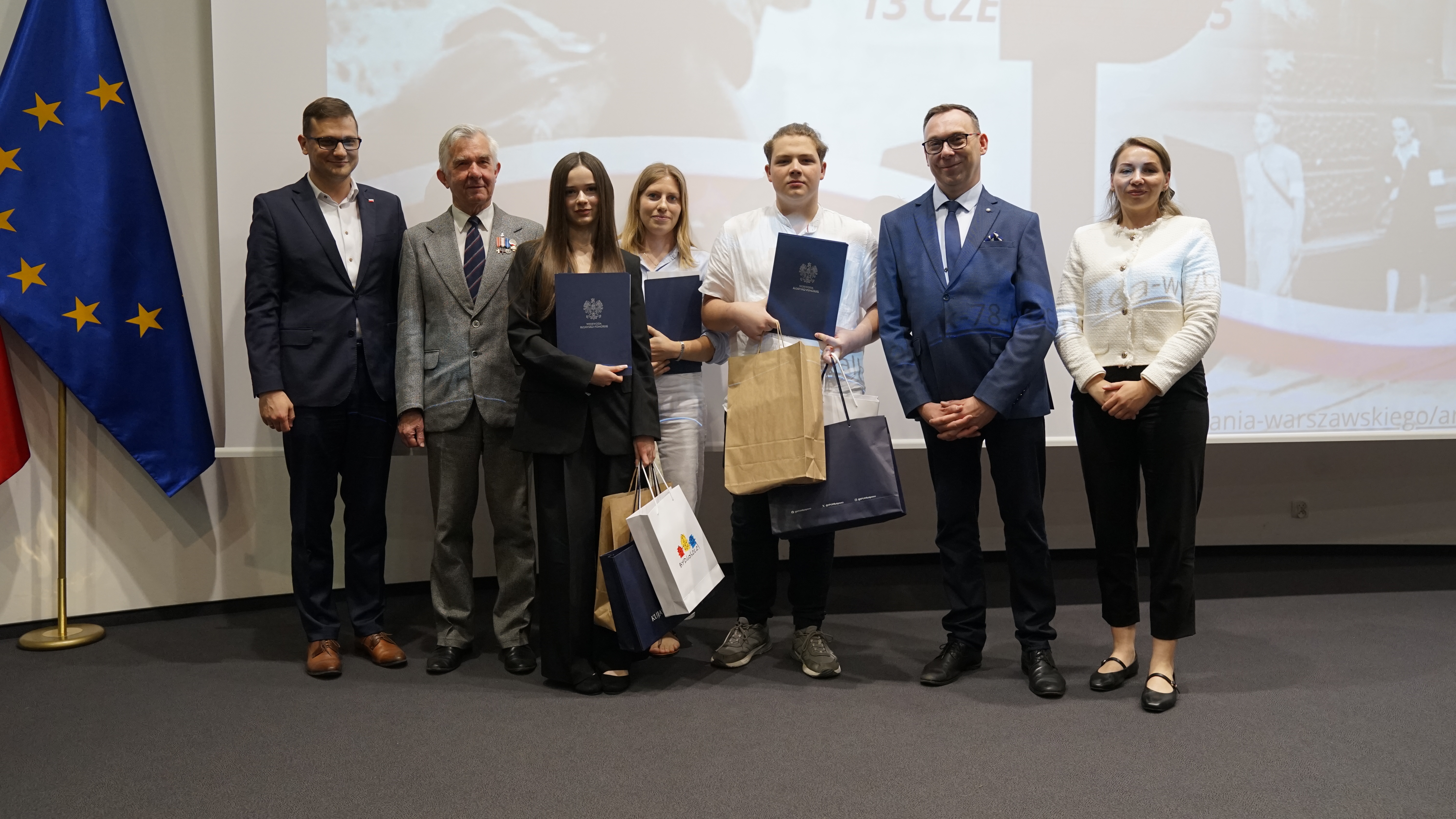 Nagrody na ręce 15 laureatów wręczyli wspólnie Wojewoda Michał Sztybel, Pełnomocnik ds. Pamięci Historycznej Dawid Myszko, reprezentująca Marszałka Województwa Agnieszka Seydak oraz członek Prezydium Zarządu Głównego ŚZŻAK, prezes Okręgu Toruń - Lesław Welker.
