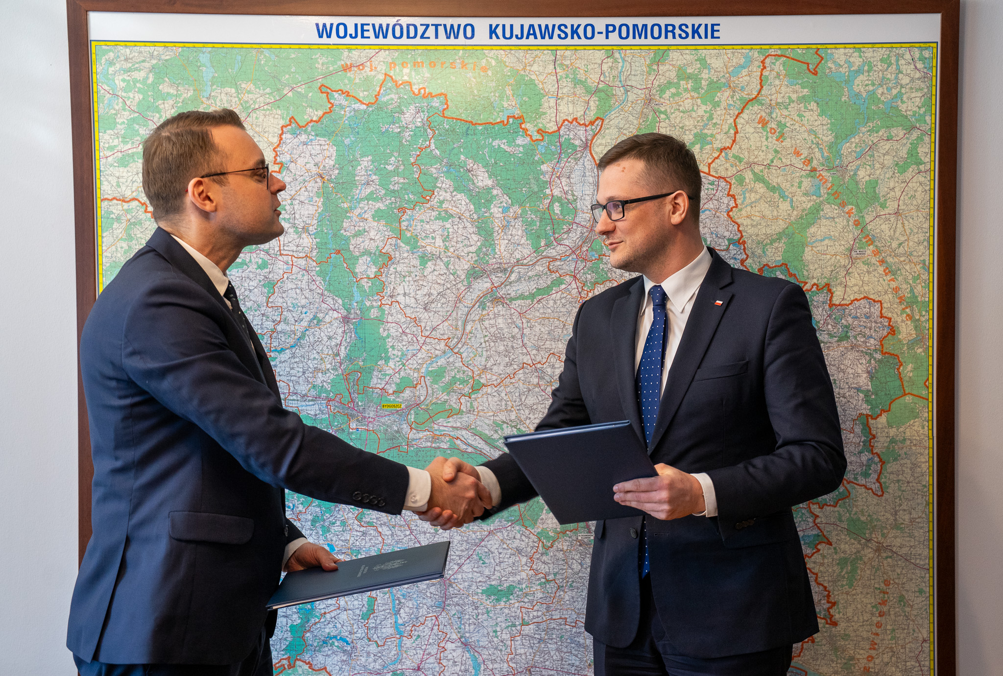 W Żninie powstanie nowy żłobek z 50 miejscami dla najmłodszych mieszkańców. Inwestycja o wartości ponad 3,5 mln zł, finansowana z Krajowego Planu Odbudowy, obejmie budowę obiektu oraz zakup wyposażenia. Umowę na realizacje projektu w Urzędzie Wojewódzkim podpisali dziś Wojewoda Kujawsko-Pomorski Michał Sztybel oraz Burmistrz Żnina Łukasz Kwiatkowski.