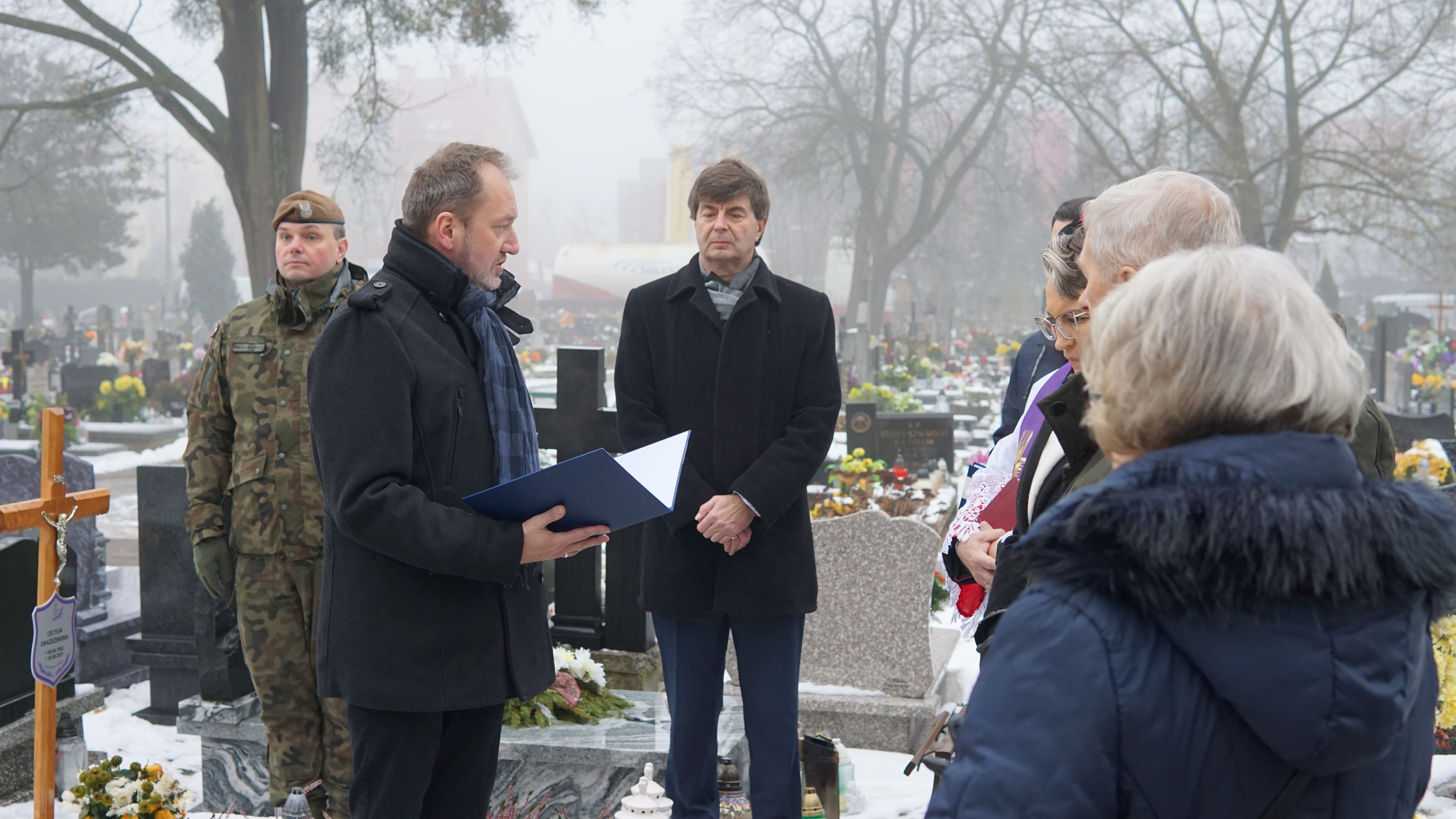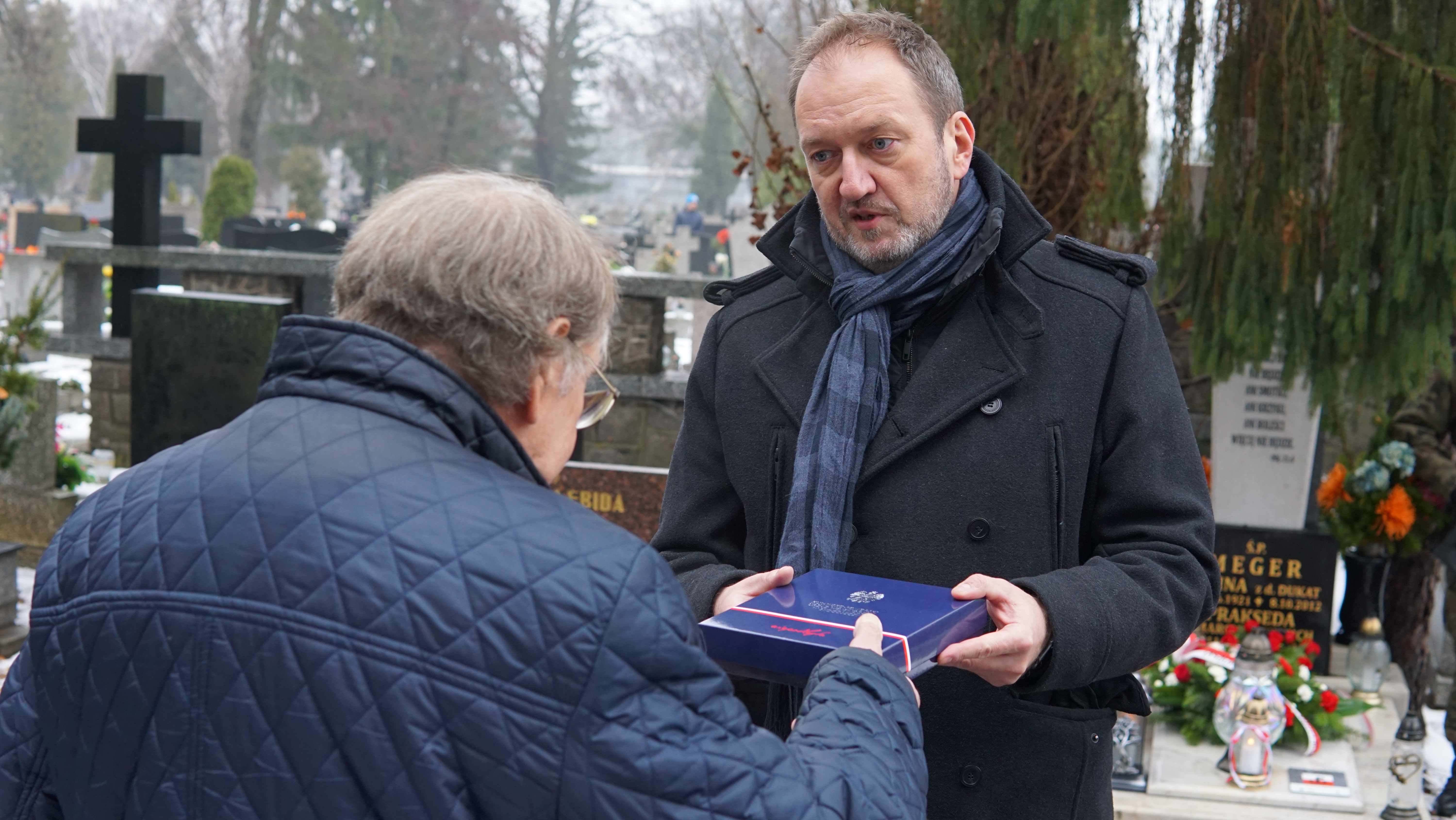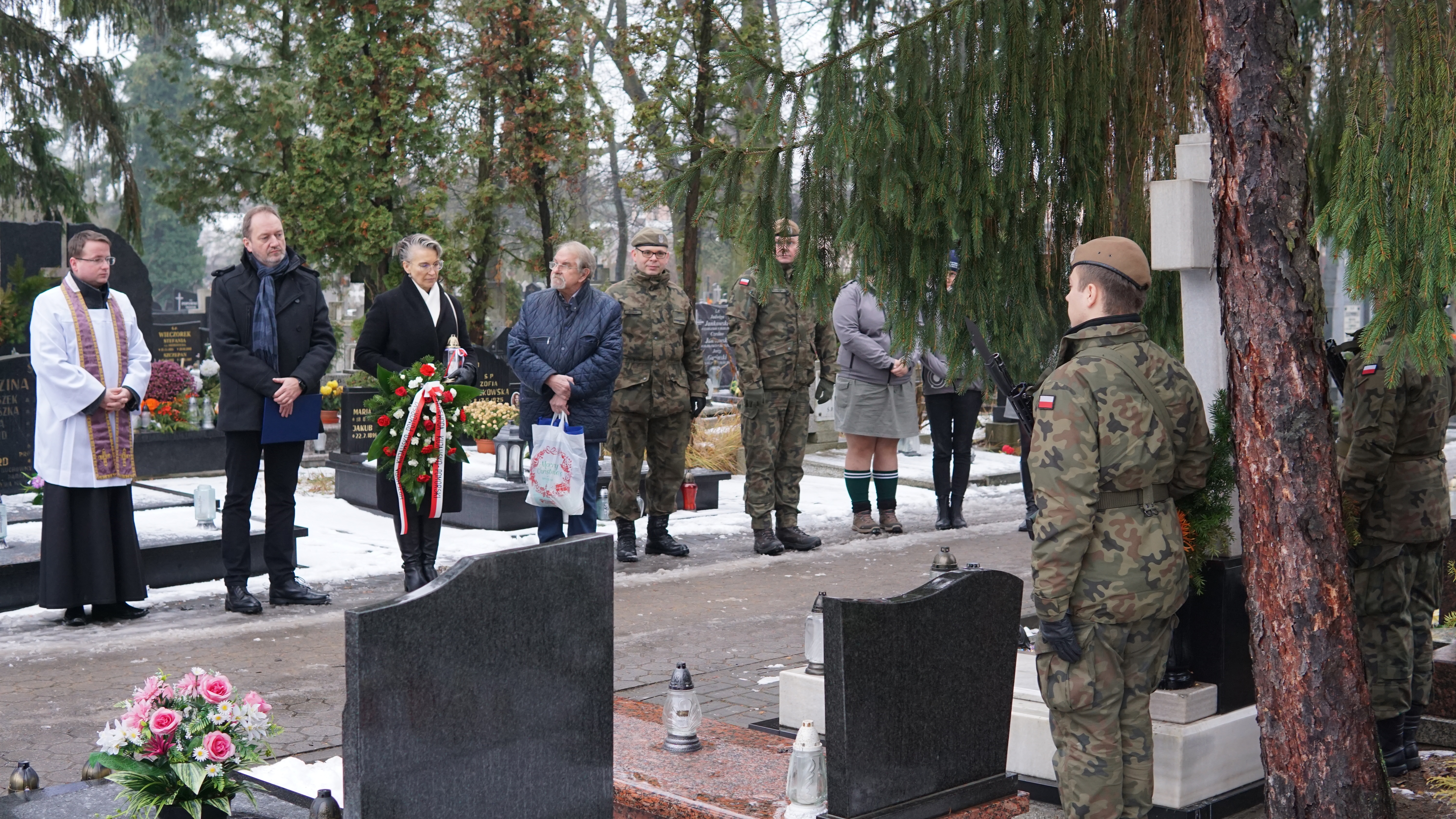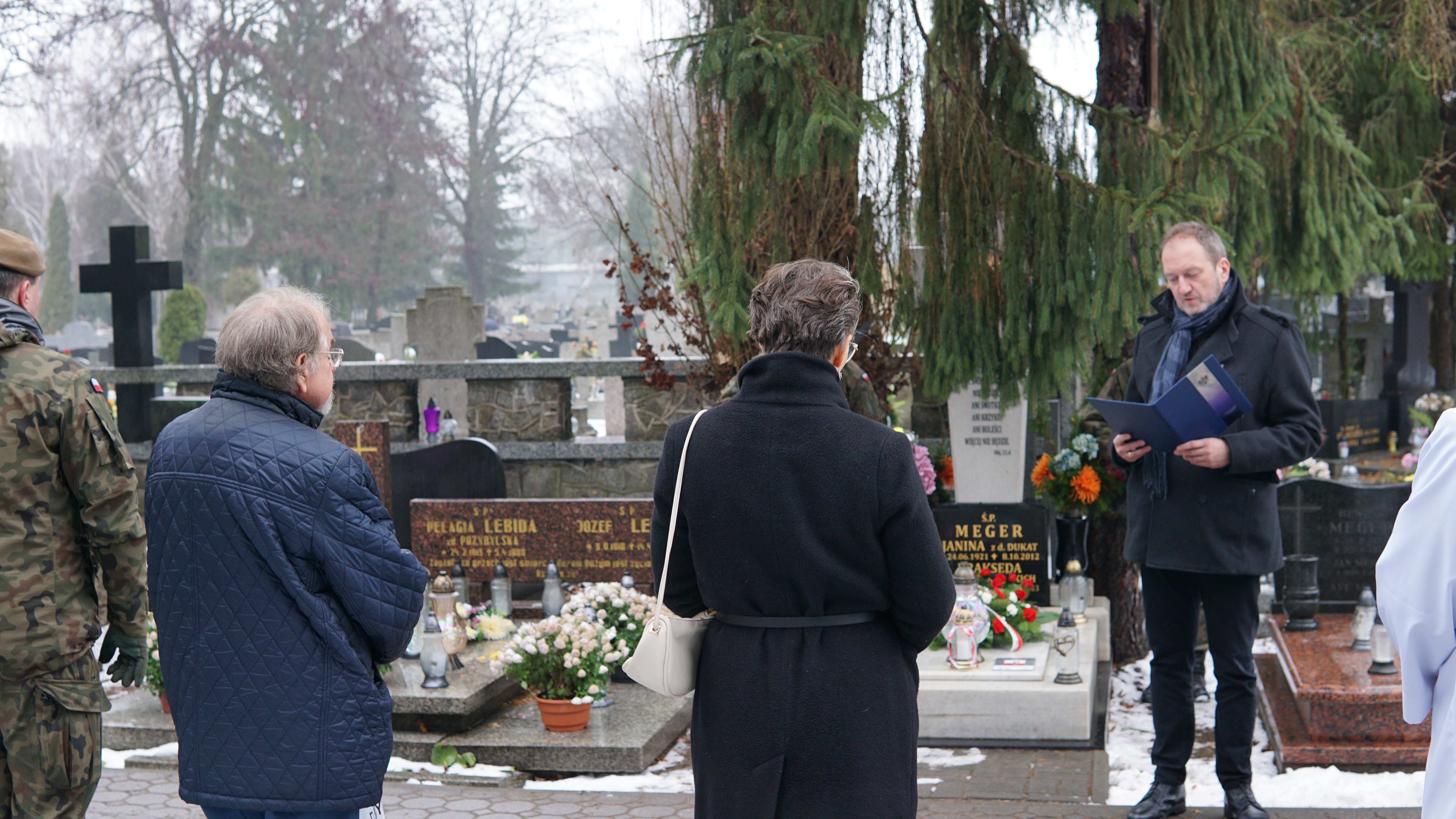 Trzeci ze znakowanych dziś grobów należy do śp. Janiny Meger. Uroczystość tą uświetniła obecność syna śp. pani Janiny, pana Mariana Megera, który wspomniał, że jego matka była osobą ciepłą i przez całe życie zajmującą się domem.