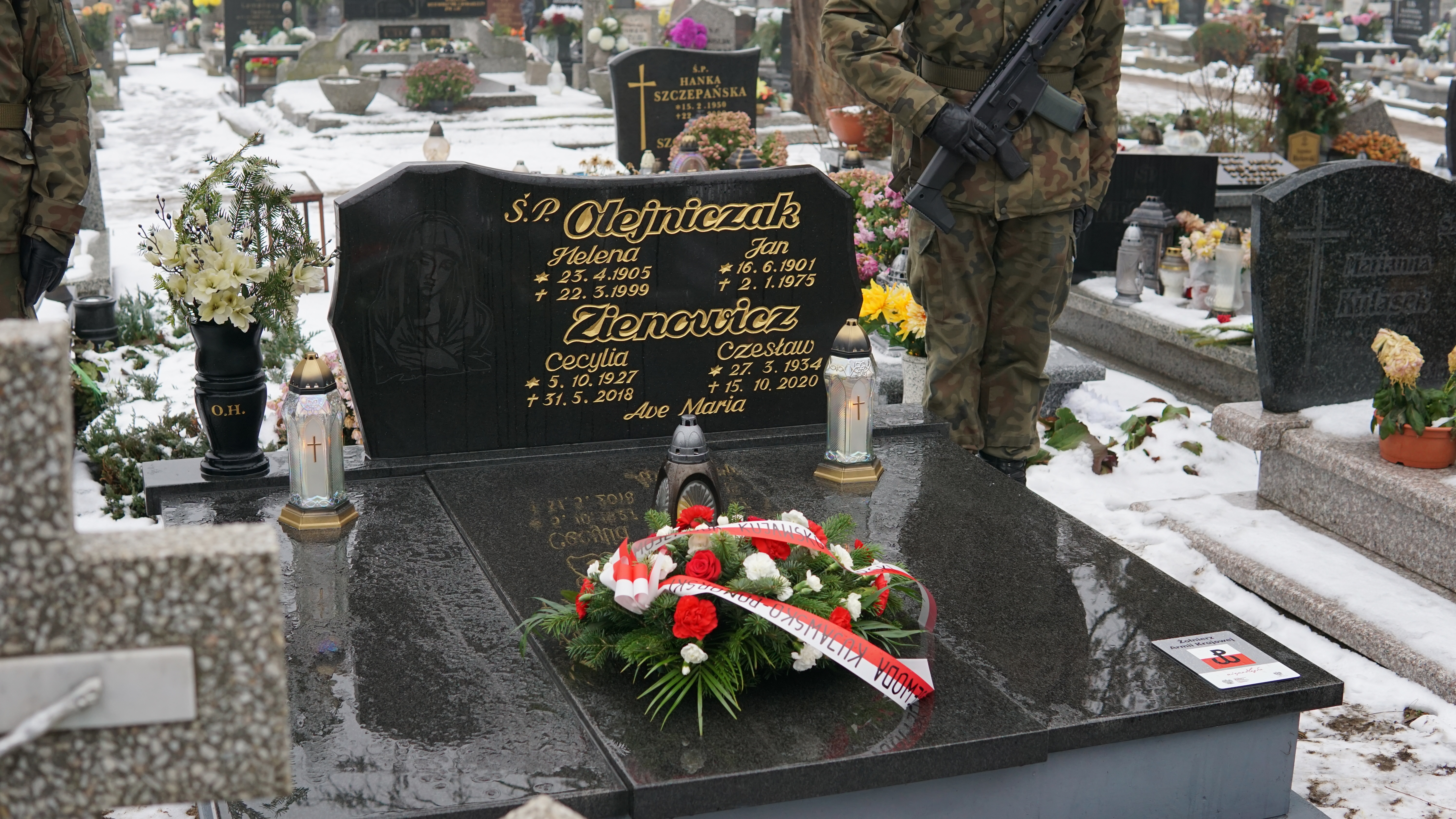 Kolejna uroczystość miała miejsce na cmentarzu komunalnym przy ul. Kcyńskiej. Tam tabliczkę „Żołnierz Armii Krajowej” nadano miejscu pochówku śp. Cecylii Zienowicz, a w uroczystości uczestniczył jej syn, pan Jacek Zienowicz, który powiedział, że jest dumny z faktu, iż może tutaj dzisiaj stać, trzymać biało-czerwoną flagę i oddawać honory swojej mamie. Syn śp. Cecylii Zienowicz wspomniał także, iż w trakcie przeglądania dokumentów po śmierci mamy znalazł jej wspomnienia, w których na końcu widniało zdanie „i tak jestem szczęśliwa i niczego nie żałuję”.