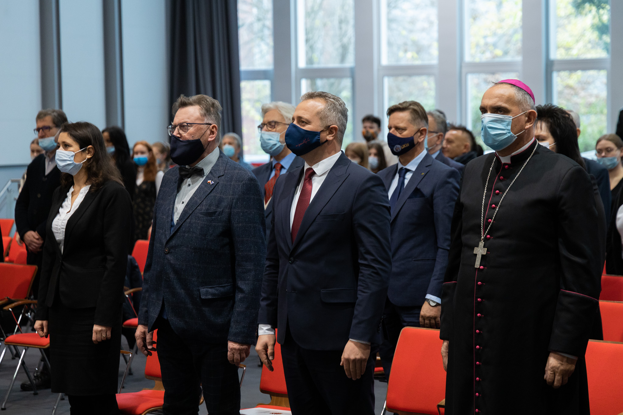 Wojewoda Mikołaj Bogdanowicz nie krył radości z faktu, że przy okazji sesji Jubileuszu 40. Tygodnia Kultury Chrześcijańskiej po raz pierwszy w Kujawsko-Pomorskim Urzędzie Wojewódzkim gościł nowy Ordynariusz Diecezji Bydgoskiej ks. bp Krzysztof Włodarczyk.