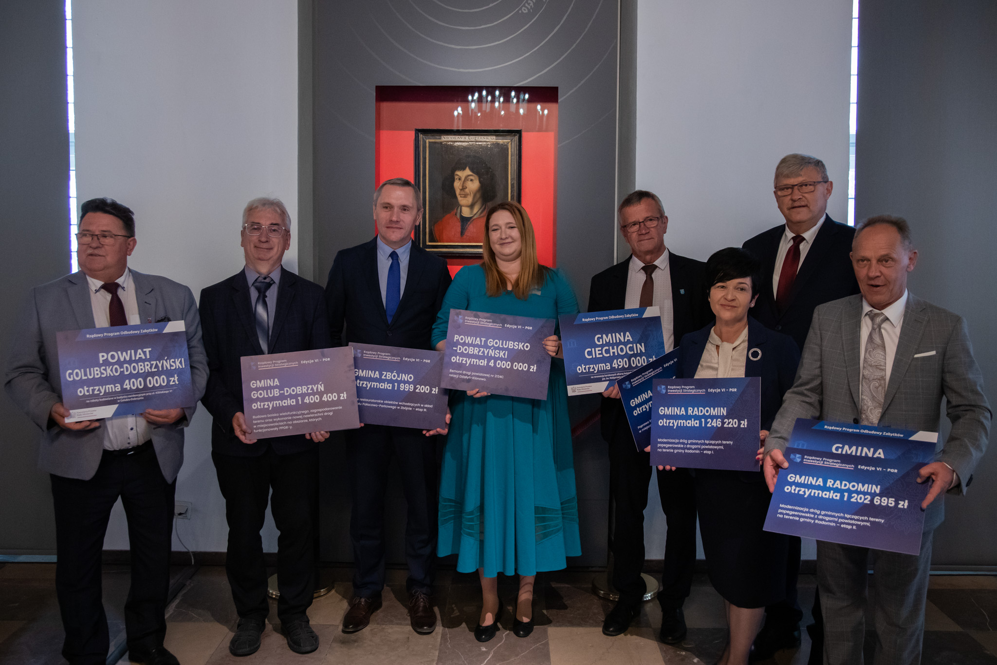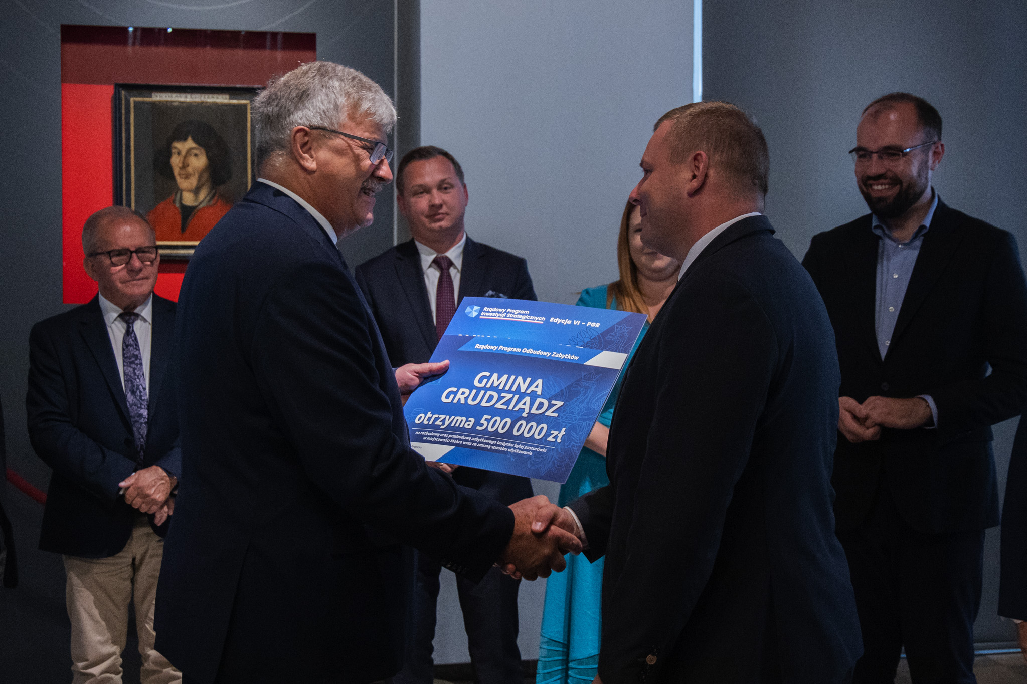 Wiceminister Rolnictwa i Rozwoju Wsi Anna Gembicka zwróciła uwagę na fakt, że uroczystość odbywa się w sali, którą zdobi zabytkowy portret Mikołaja Kopernika – odrestaurowany również dzięki dofinansowaniu rządowemu.