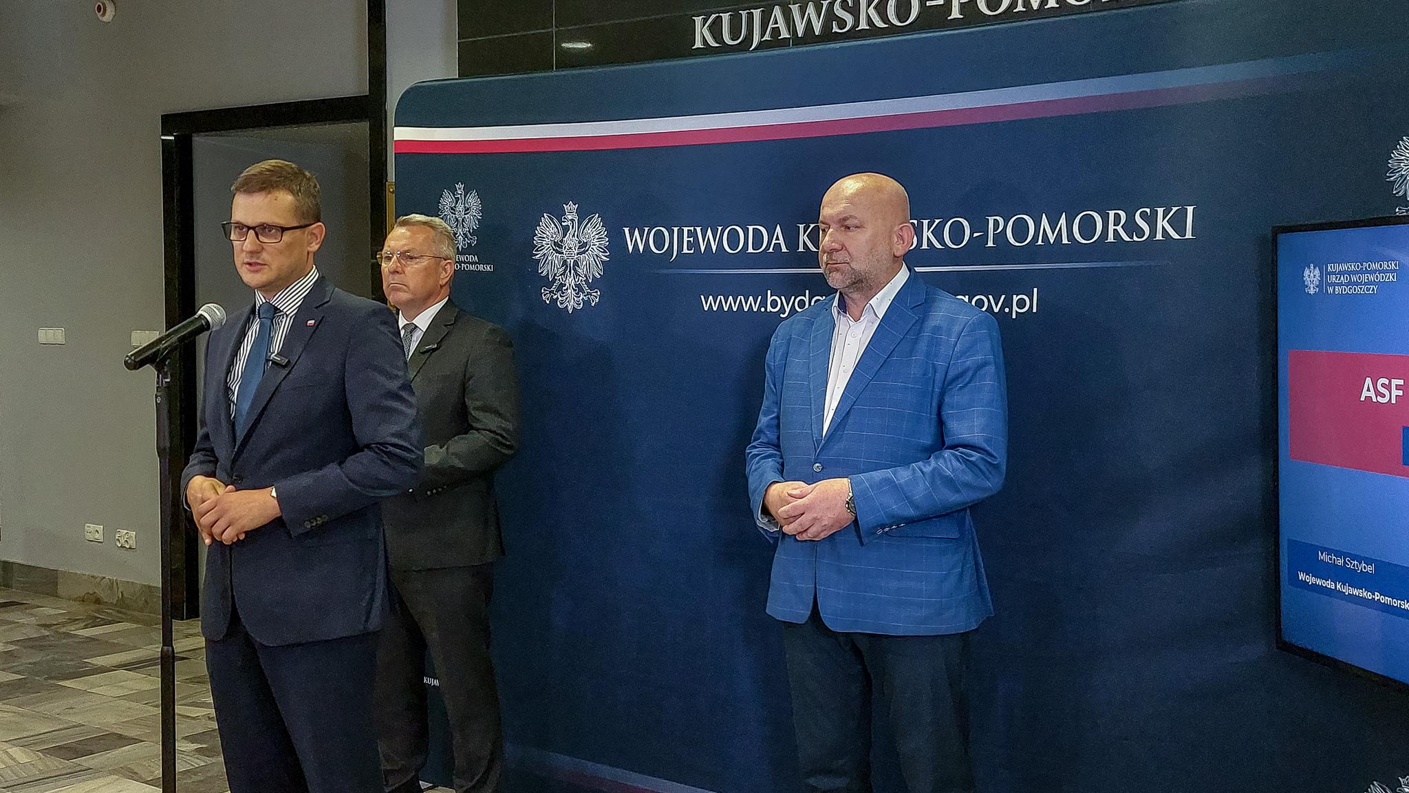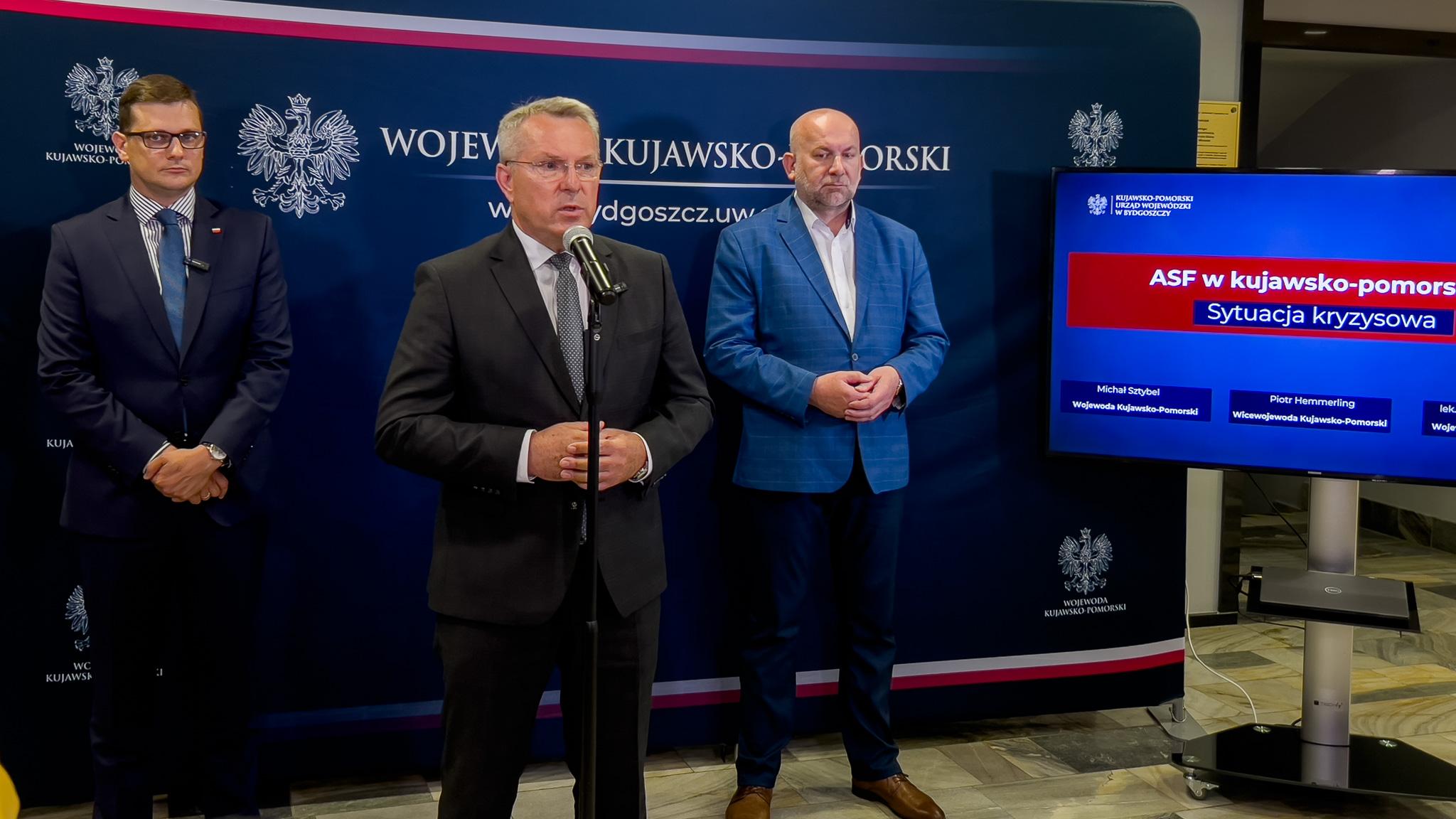 W związku z potwierdzeniem pierwszego od 10 lat ogniska afrykańskiego pomoru świń (ASF) u świń hodowlanych w województwie kujawsko-pomorskim, Wojewoda Michał Sztybel zwołał w dniu dzisiejszym posiedzenie Wojewódzkiego Zespołu Zarządzania Kryzysowego. Odbyła się również konferencja prasowa.