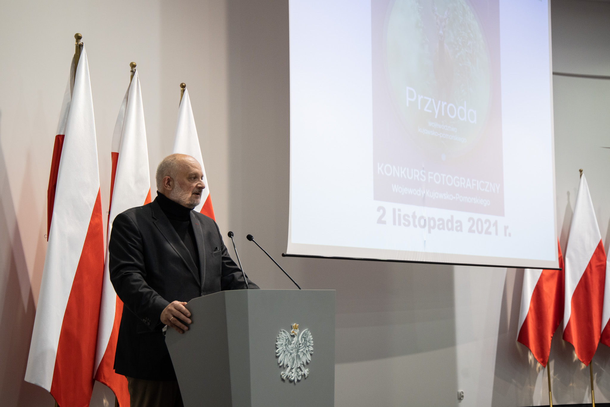 Cieszę się, że udało nam się spotkać mimo panującej epidemii i przekazać Państwu osobiste gratulacje i podziękowania za to, że po raz kolejny zechcieliście wziąć udział w tym ważnym dla mnie konkursie. Gratuluję tym, którzy są już bardzo doświadczeni jeśli chodzi o branie udziału w tym konkursie i zdobywają kolejne nagrody. Na tegoroczną edycję zgłosiło się 323 artystów, przekazując 3547 zdjęć, które podlegały ocenie przez szanowne jury. Zainteresowanie konkursem z roku na rok wzrasta, z czego się bardzo cieszymy. Ostatecznie 71 autorów zostało wyróżnionych i ich 219 prac znalazło się przede wszystkim w albumie, ale także w kalendarzu województwa kujawsko-pomorskiego, który jest w mojej ocenie wyjątkowo piękny w tym roku. To dzięki środkom z Wojewódzkiego Funduszu Ochrony Środowiska i Gospodarki Wodnej i projektowi, który organizujemy od wielu lat, jest możliwe tak bogate nagrodzenie uczestników. Te albumy są ambasadorem naszego regionu i trafiają one do ludzi z całej Polski