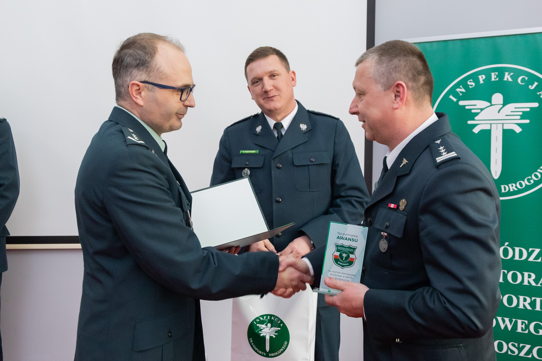 Uroczystość była okazją do wręczenia awansów na wyższe stanowiska służbowe. - Bardzo dziękuję za Waszą codzienną, trudną pracę. Dziękuję za zrozumienie naszej służby i gratuluję awansów – podkreślił Zastępca Głównego Inspektora Transportu Drogowego.