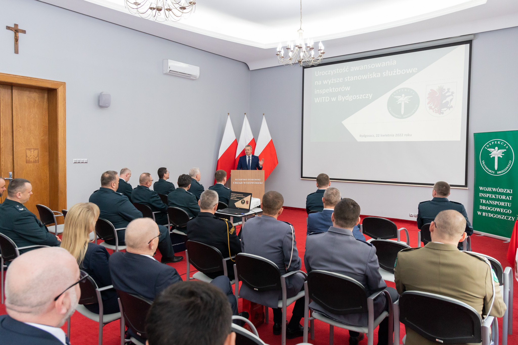 Narada roczna Wojewódzkiego Inspektoratu Transportu Drogowego w Bydgoszczy oraz wręczenie awansów na wyższe stanowiska służbowe, to główne tematy dzisiejszej uroczystości w Kujawsko-Pomorskim Urzędzie Wojewódzkim.