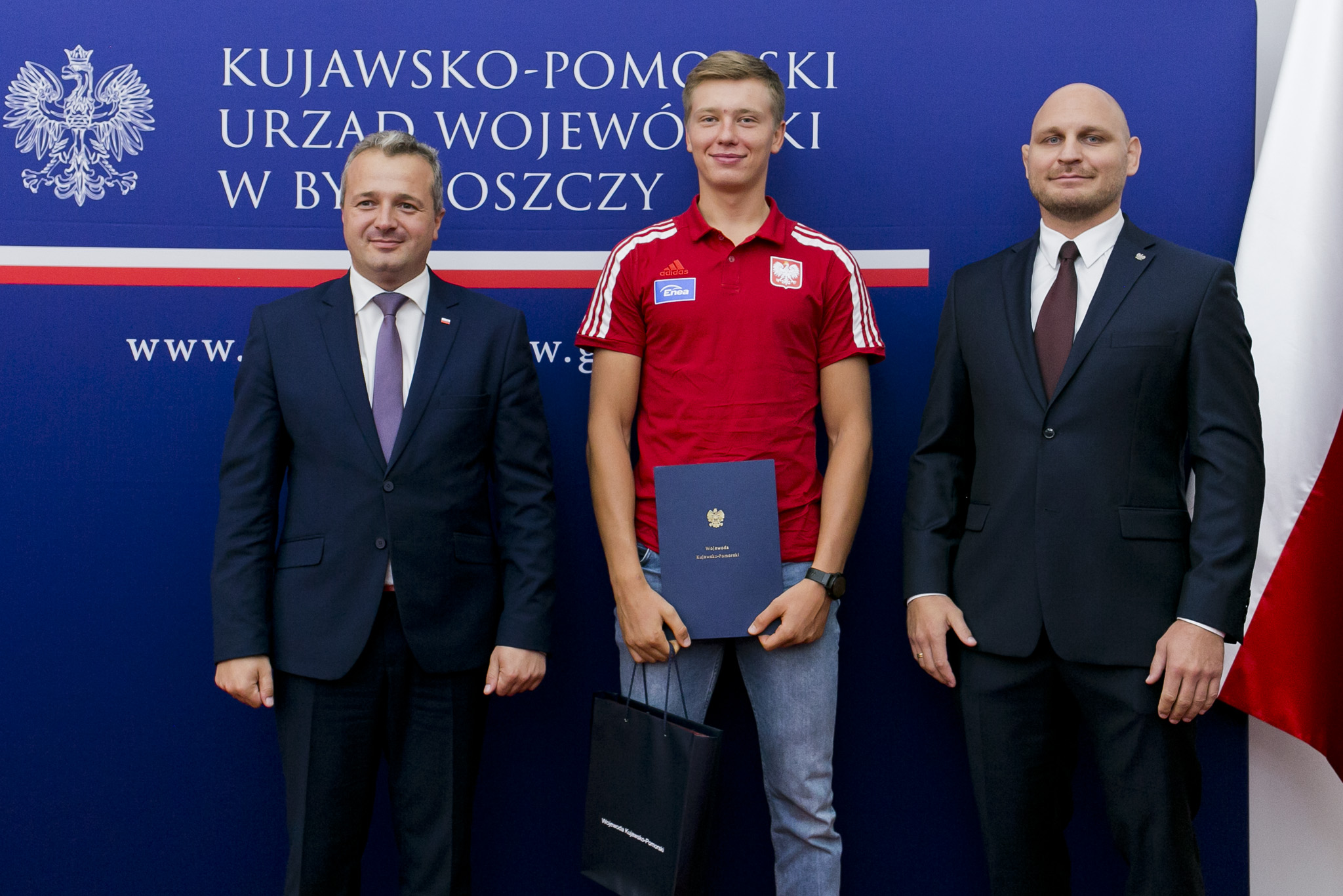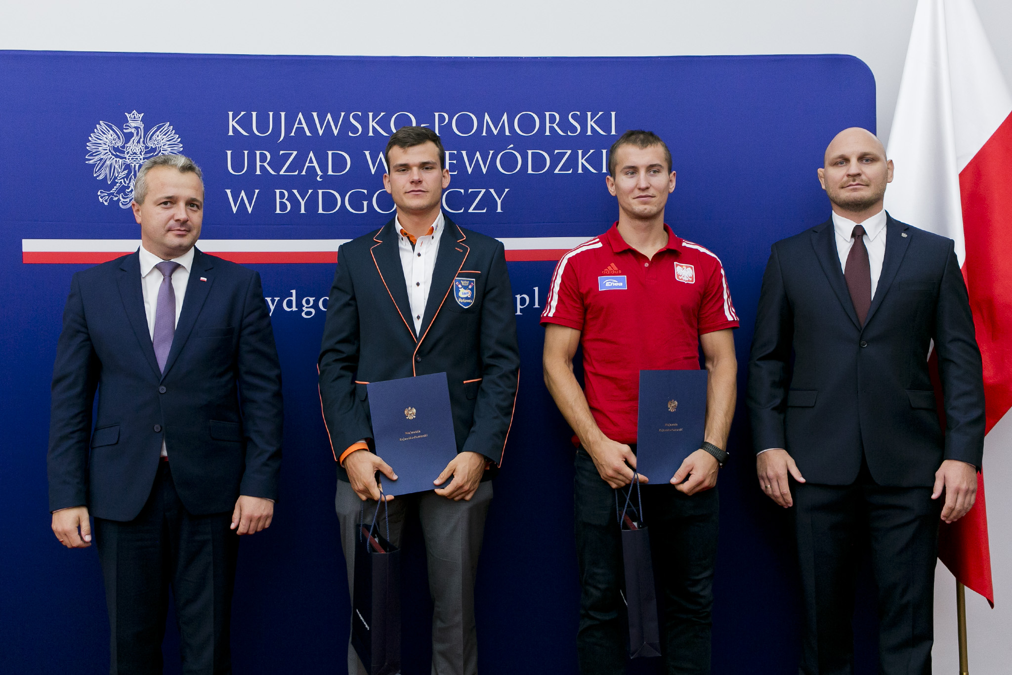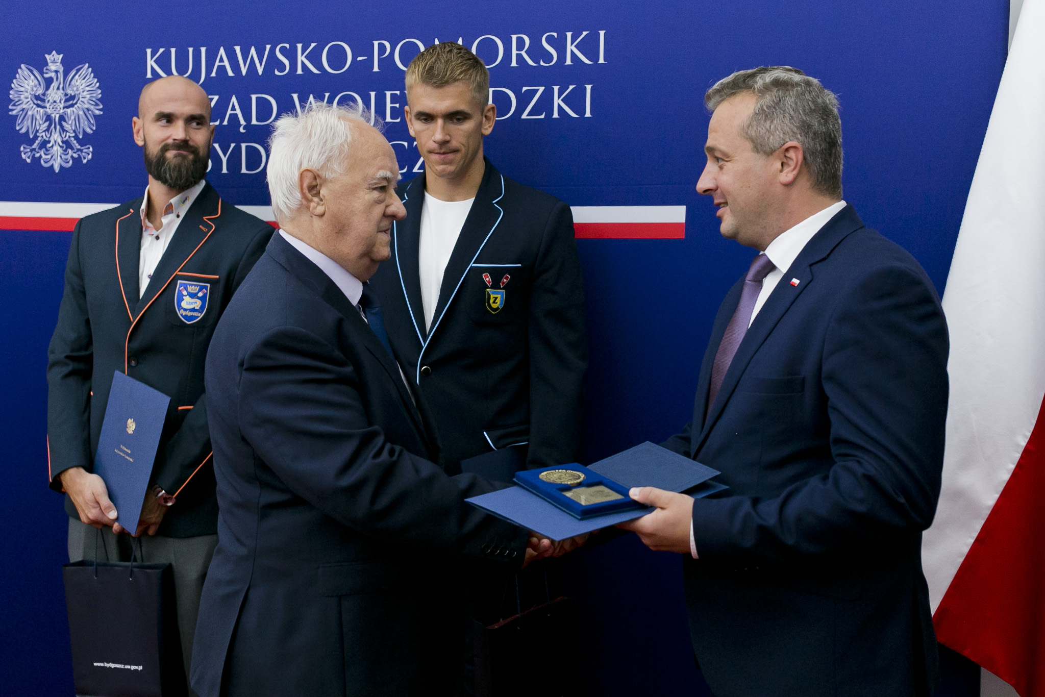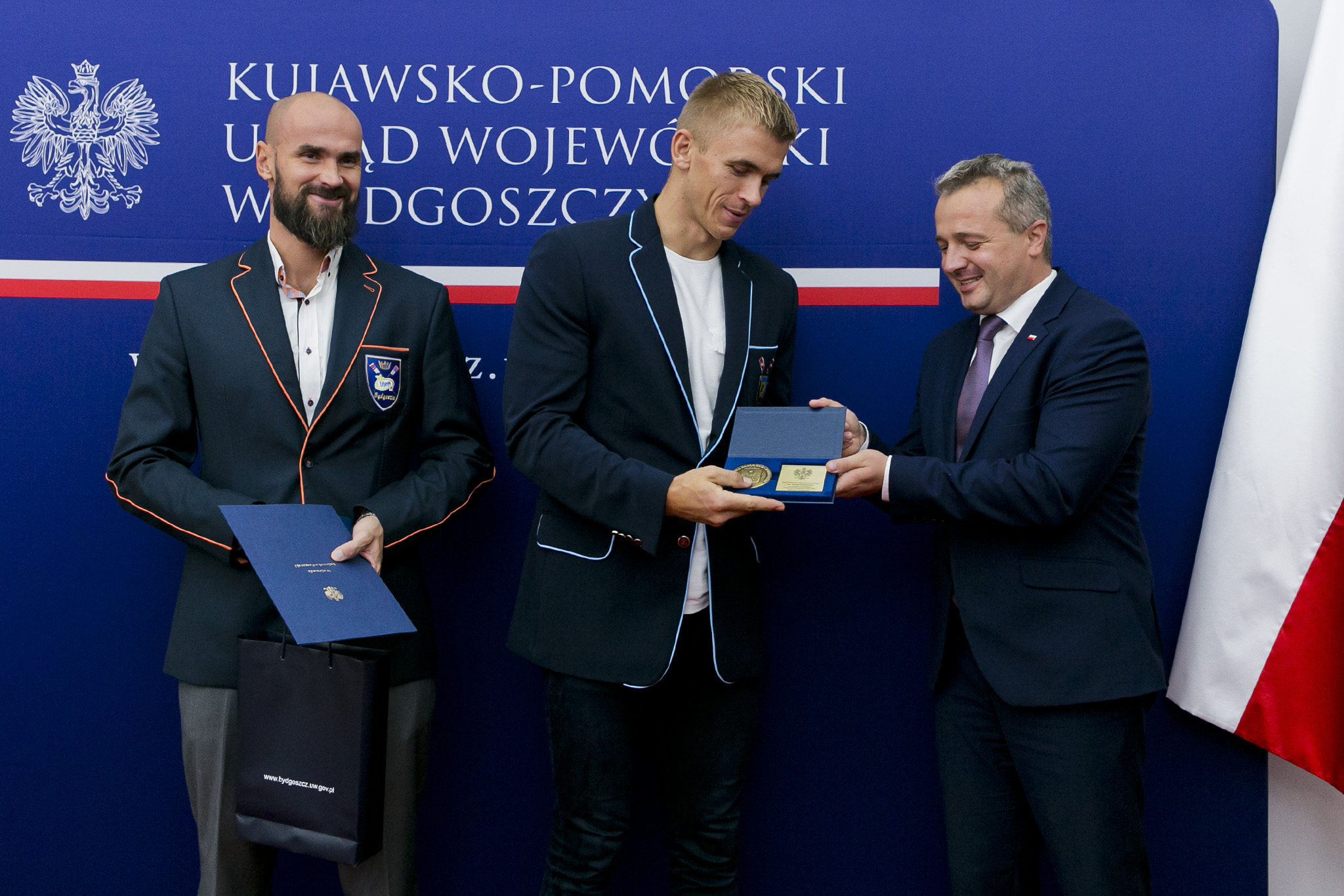 Po tych wystąpieniach przyszedł czas na wręczenie Medali Wojewody Kujawsko-Pomorskiego za zdobycie mistrzostwa świata i uzyskanie kwalifikacji olimpijskiej. Wojewoda uhonorował Mikołaja Burdę z RTW LOTTO Bydgostia Bydgoszcz, Mateusza Wilangowskiego z KW Wisła Grudziądz oraz Michała Szpakowskiego z CWZS Zawisza Bydgoszcz.