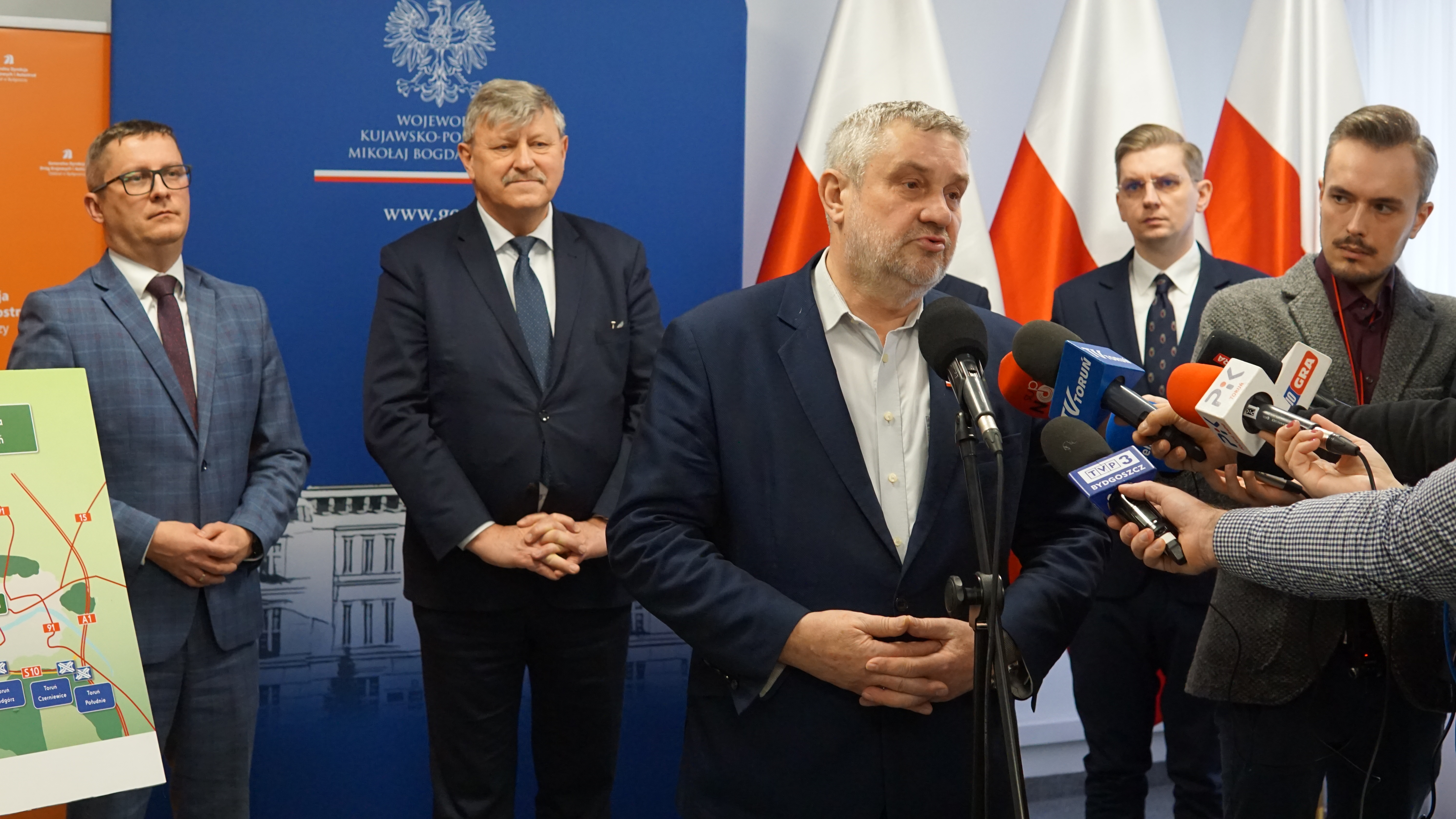 Przedstawienie informacji o podpisaniu umowy na ostatni („toruński”) odcinek drogi S10 oraz harmonogramu prac na pozostałych odcinkach było tematem dzisiejszej konferencji, w której uczestniczyli Poseł Jan Krzysztof Ardanowski, Wicewojewoda Kujawsko-Pomorski Józef Ramlau, Prezydent Miasta Torunia Michał Zaleski, Zastępca Prezydenta Miasta Torunia Adrian Mól, radny sejmiku województwa kujawsko-pomorskiego Przemysław Przybylski oraz dyrektor bydgoskiego oddziału Generalnej Dyrekcji Dróg Krajowych i Autostrad Sebastian Borowiak.