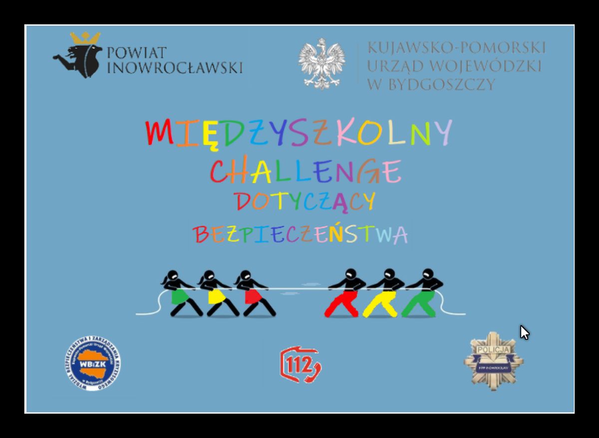 Zapraszamy do rywalizacji w wojewódzkim „Międzyszkolnym Challenge’u” z wiedzy o bezpieczeństwie. Wygrywają trzy klasy, które śmiało staną do zadania i rozwiążą prawidłowo test. „Międzyszkolny Challenge” obejmuje klasy od I do III szkół podstawowych na terenie województwa kujawsko-pomorskiego, które do dnia 16.02.2021r. prześlą swoją gotowość do udziału w challenge’u do Komendy Powiatowej Policji w Inowrocławiu na adres mailowy: justyna.piatkowska@bg.policja.gov.pl
