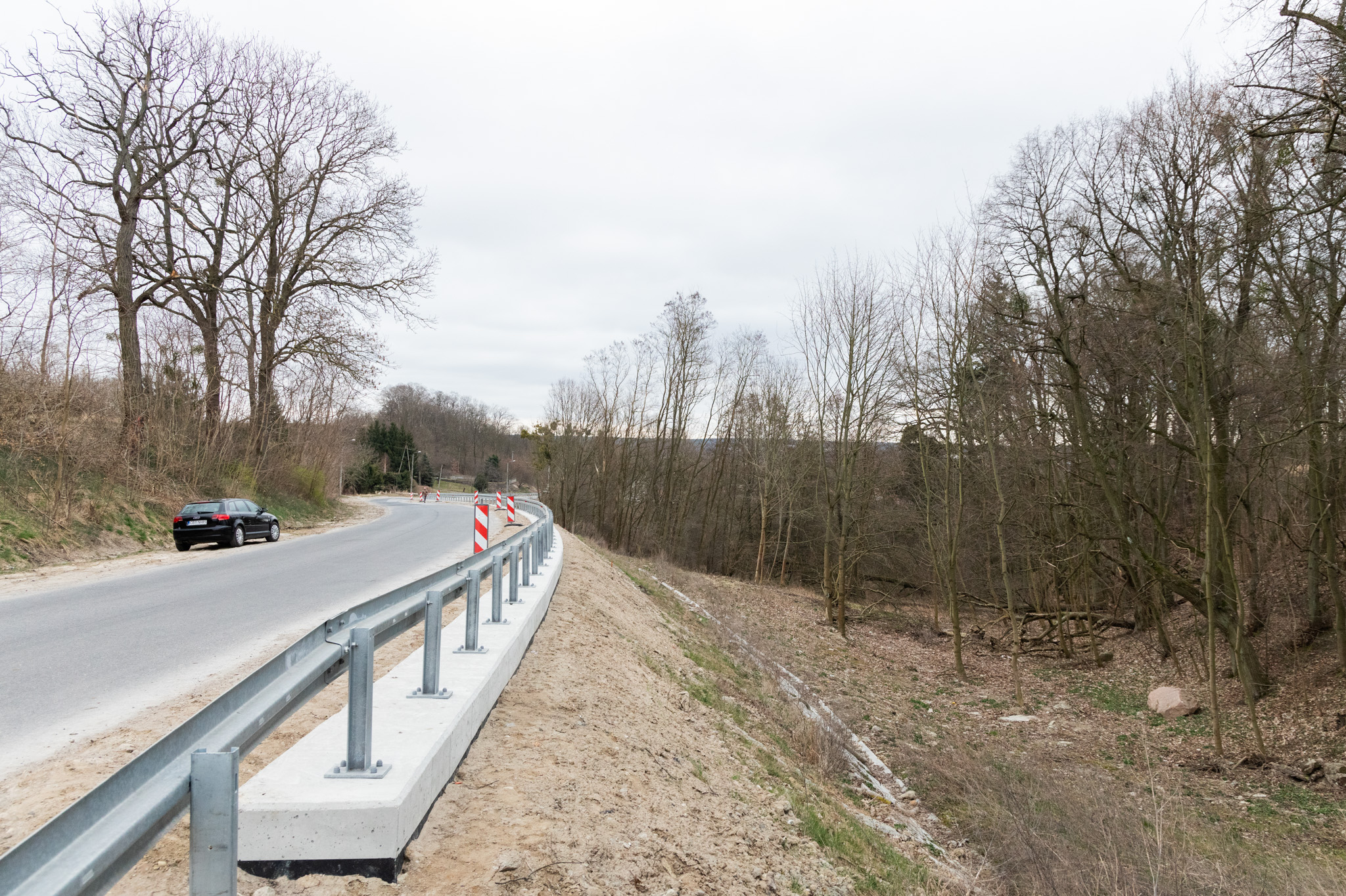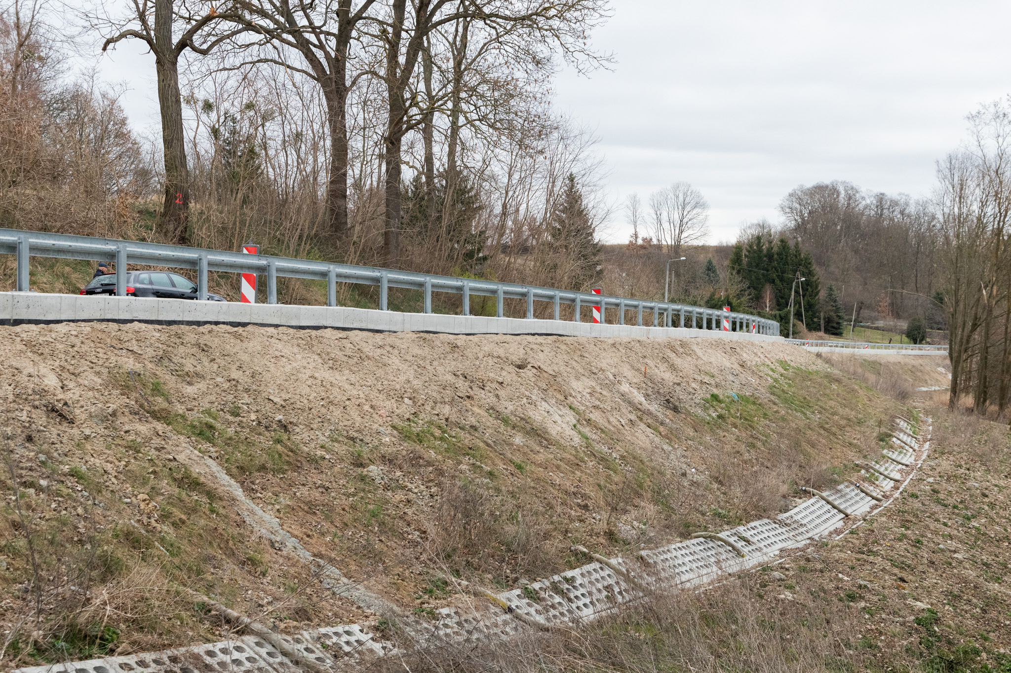 To jest czynne osuwisko. Według badań, które przeprowadziliśmy i nadal są tutaj prowadzone, to osuwisko schodziło kilka centymetrów w stronę miasta. Teraz schodziło już w dwóch parametrach, czyli w dół i w bok po kilka centymetrów. Przy tych anomaliach pogodowych, które mamy: nawałnicach, deszczach nawalnych, itd. nigdy nie wiadomo, kiedy by to spłynęło, zatamowało rzekę, bądź spłynęło z jakimś domem. Była to dla nas priorytetowa inwestycja, chodzi przede wszystkim o bezpieczeństwo mieszkańców i całej gminy.
