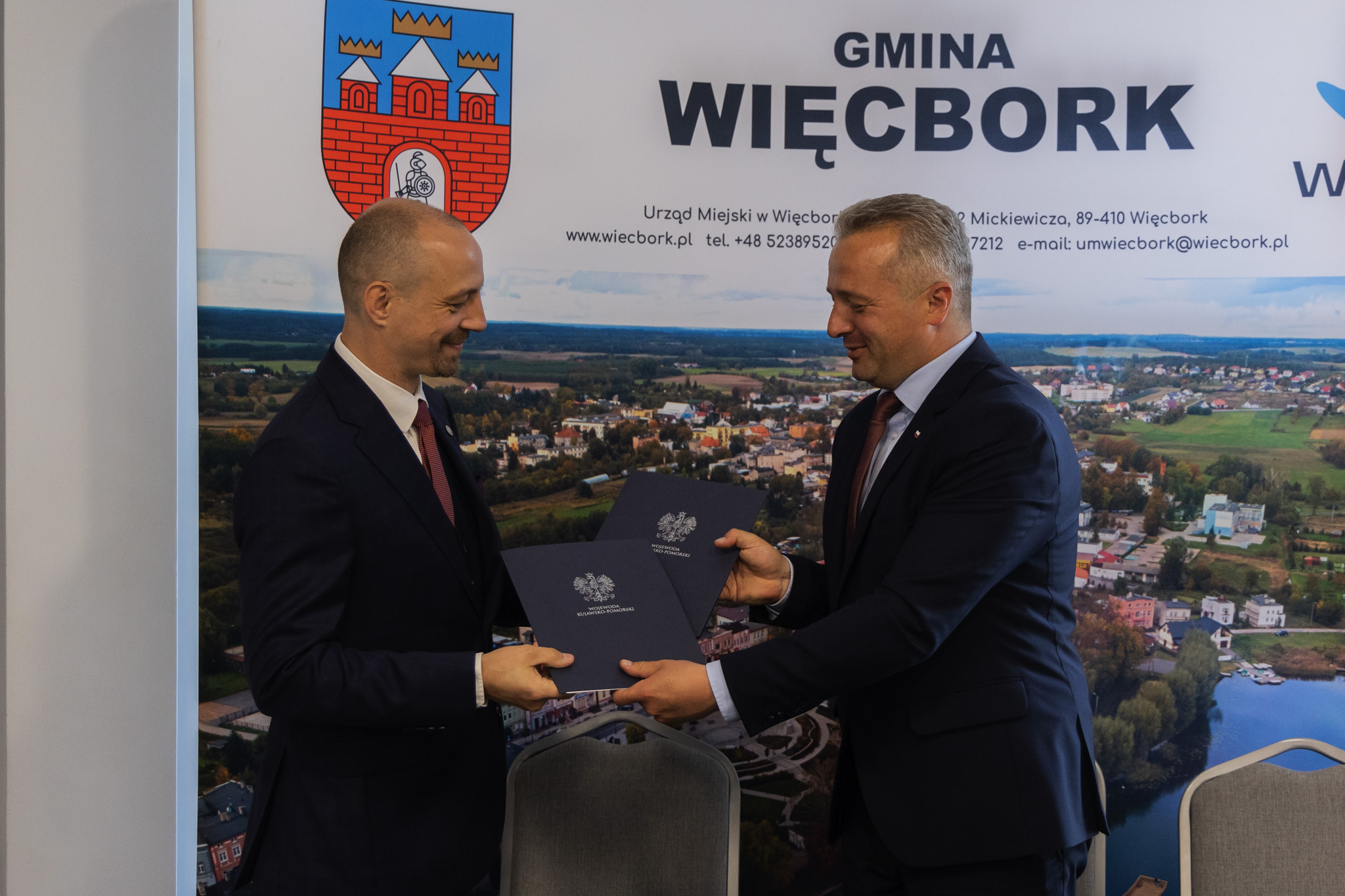 Podczas wizyty w Więcborku wojewoda Mikołaj Bogdanowicz podpisał z burmistrzem Waldemarem Kuszyńskim umowę na dofinansowanie remontu ul. Brzozowej w ramach Rządowego Funduszu Rozwoju Dróg. Całkowita wartość remontu ponad 300-metrowego odcinka drogi to blisko 980 tys. zł, a dofinansowanie z RFRD to blisko 490 tys. złotych.