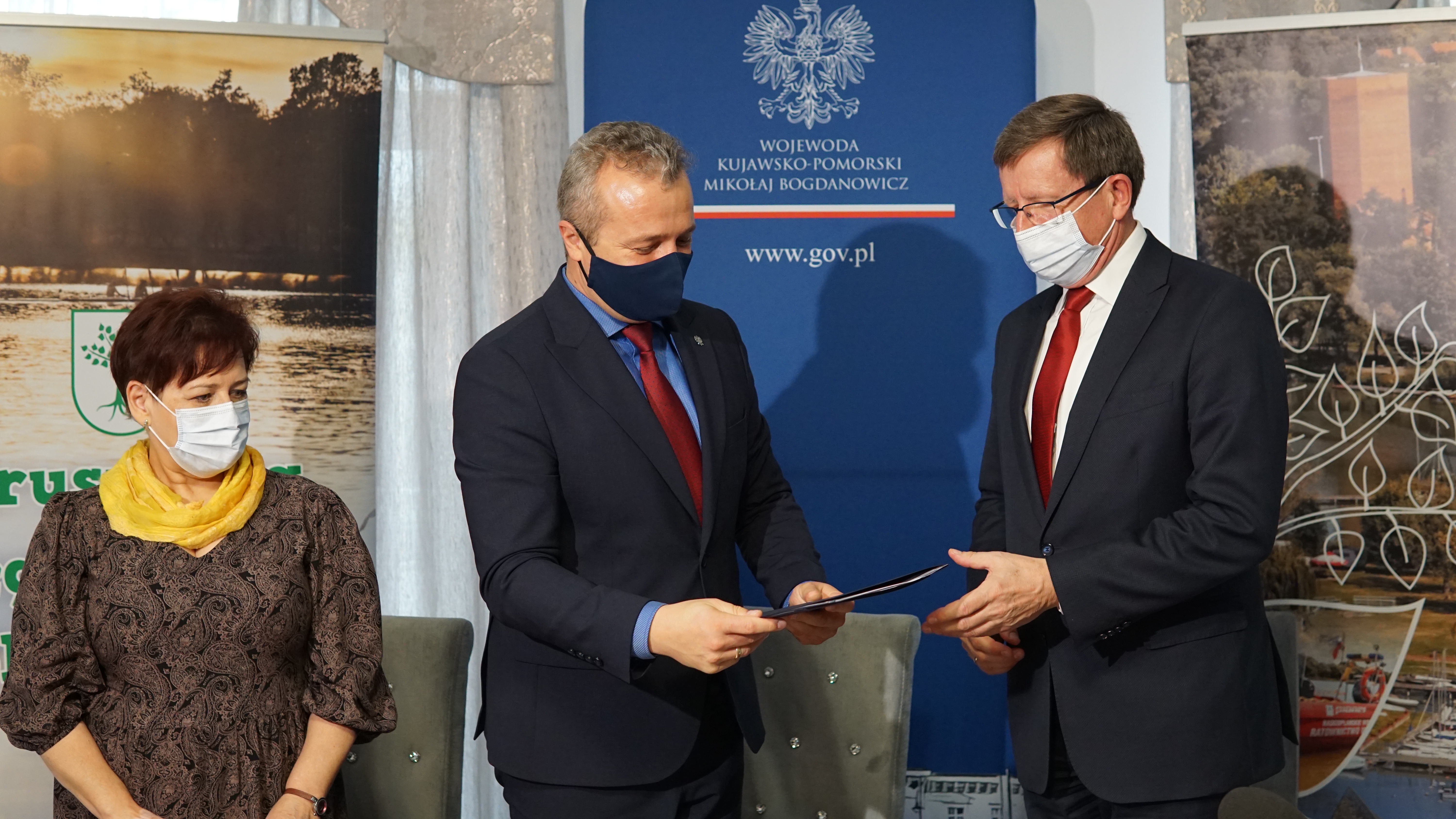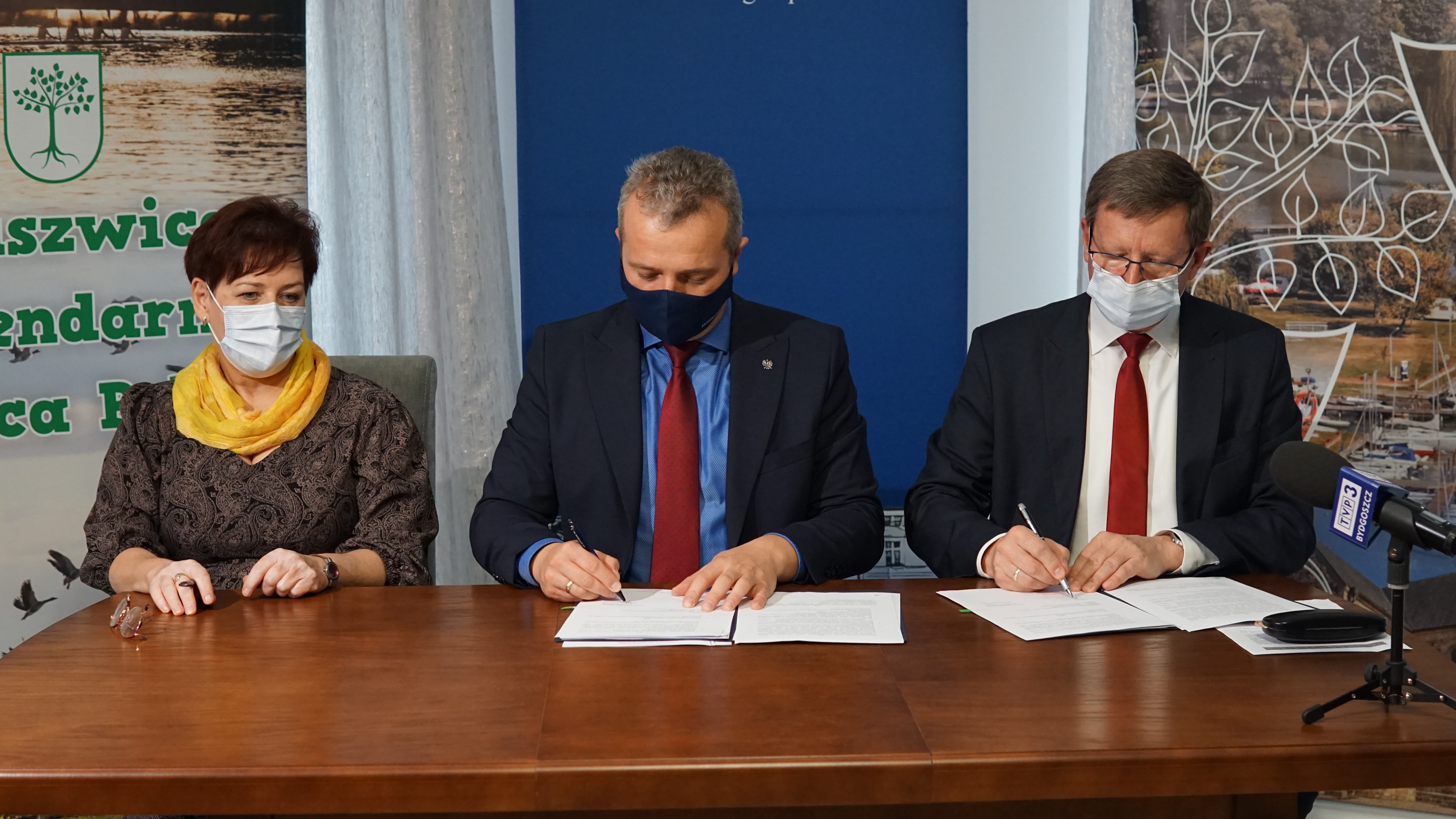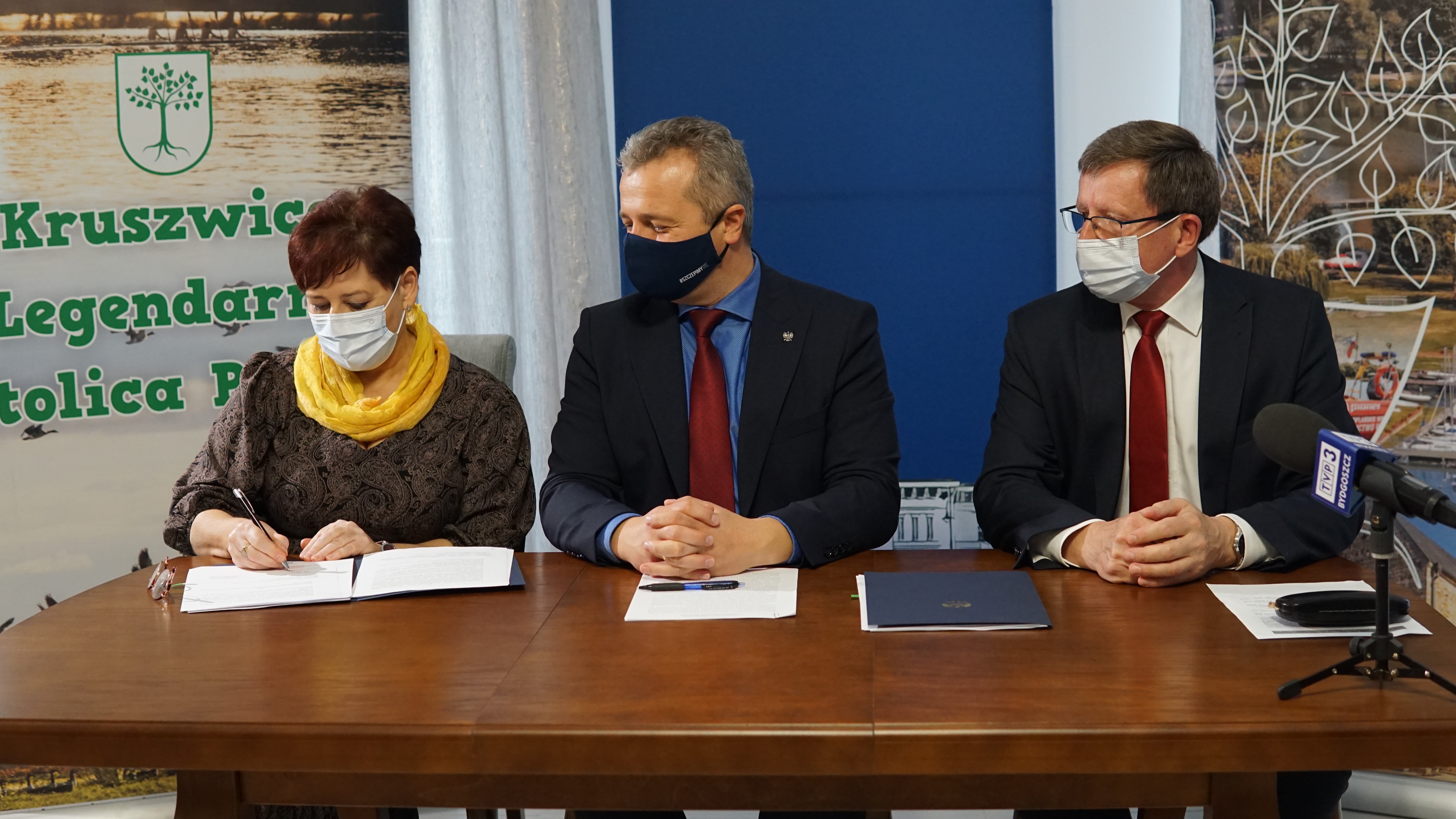 Dziś w Kruszwicy Wojewoda Kujawsko-Pomorski Mikołaj Bogdanowicz, burmistrz miasta Kruszwica Dariusz Witczak oraz skarbnik miasta Kruszwica Małgorzata Ostrowska podpisali umowę na dofinansowanie ze środków budżetu państwa aranżacji multimedialnej Mysiej Wieży.
