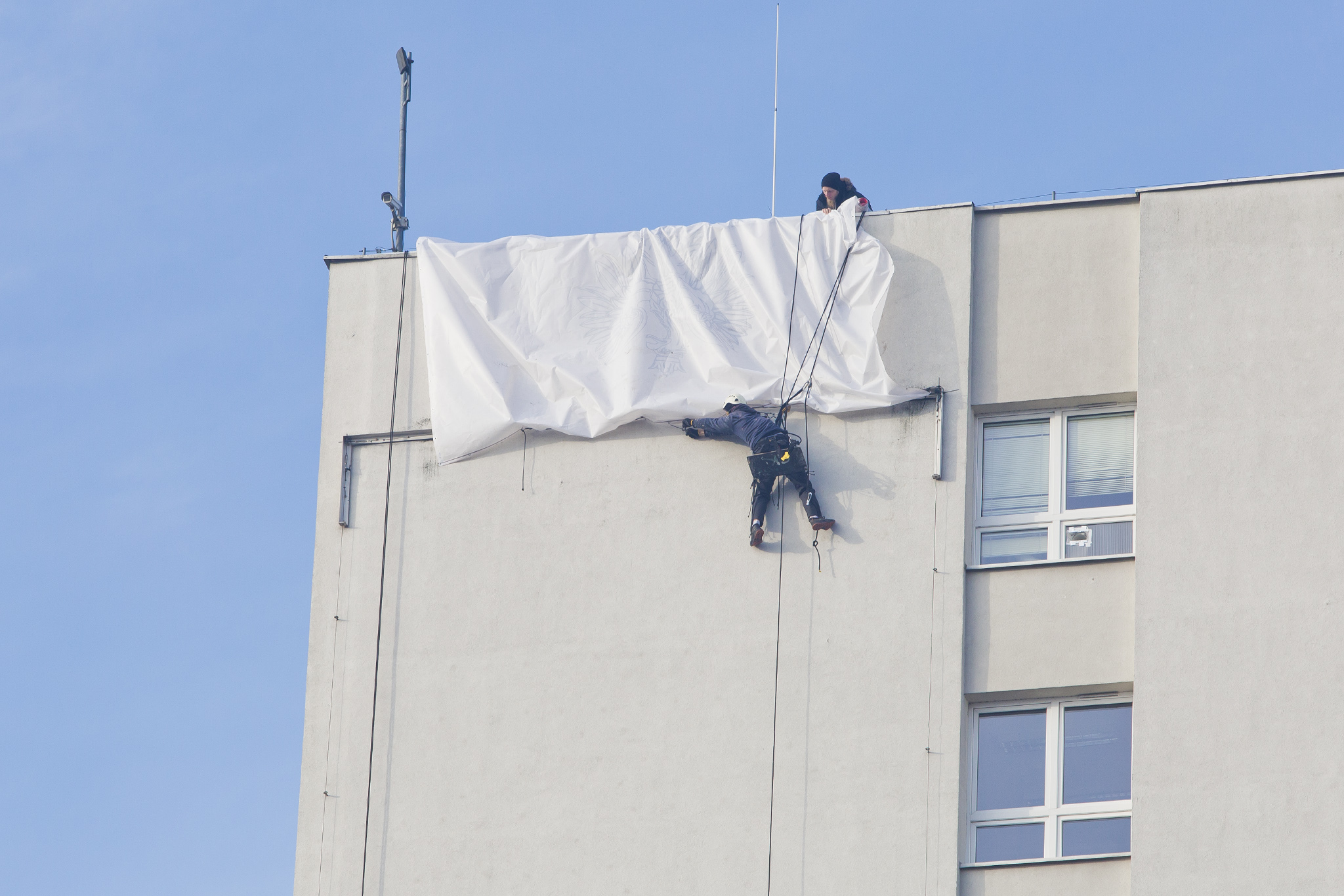 Baner upamiętniający 100-lecie powrotu Bydgoszczy do Polski został dziś umieszczony na elewacji wieżowca Kujawsko-Pomorskiego Urzędu Wojewódzkiego przy ulicy Konarskiego w Bydgoszczy.