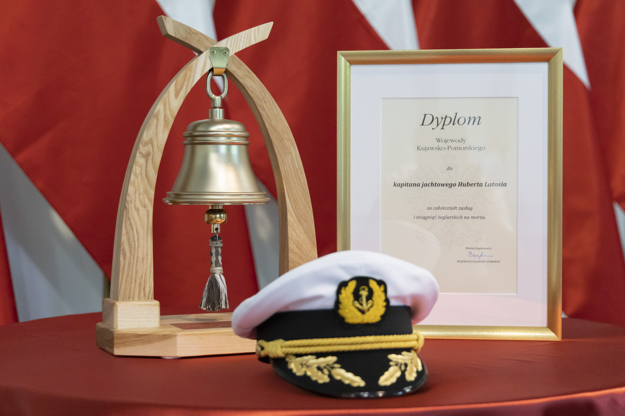 Wojewoda Mikołaj Bogdanowicz wręczył dziś Kapitanowi Seniorowi Kujawsko-Pomorskiego Kolegium Kapitanów Jachtowych Hubertowi Latosiowi Honorową Nagrodę Wojewody Kujawsko-Pomorskiego „Za wybitne osiągnięcia żeglarskie na morzu”.