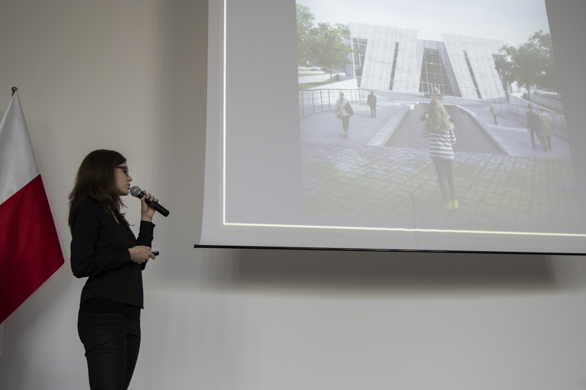 Następnie pani architekt przedstawiła zgromadzonym koncepcję powstania bydgoskiego Muzeum. Jej praca dyplomowa znalazła się w finale konkursu Architektura Betonowa 2019, w gronie 10 najlepszych prac z całej Polski. Konkurs zorganizowała Politechnika Krakowska.