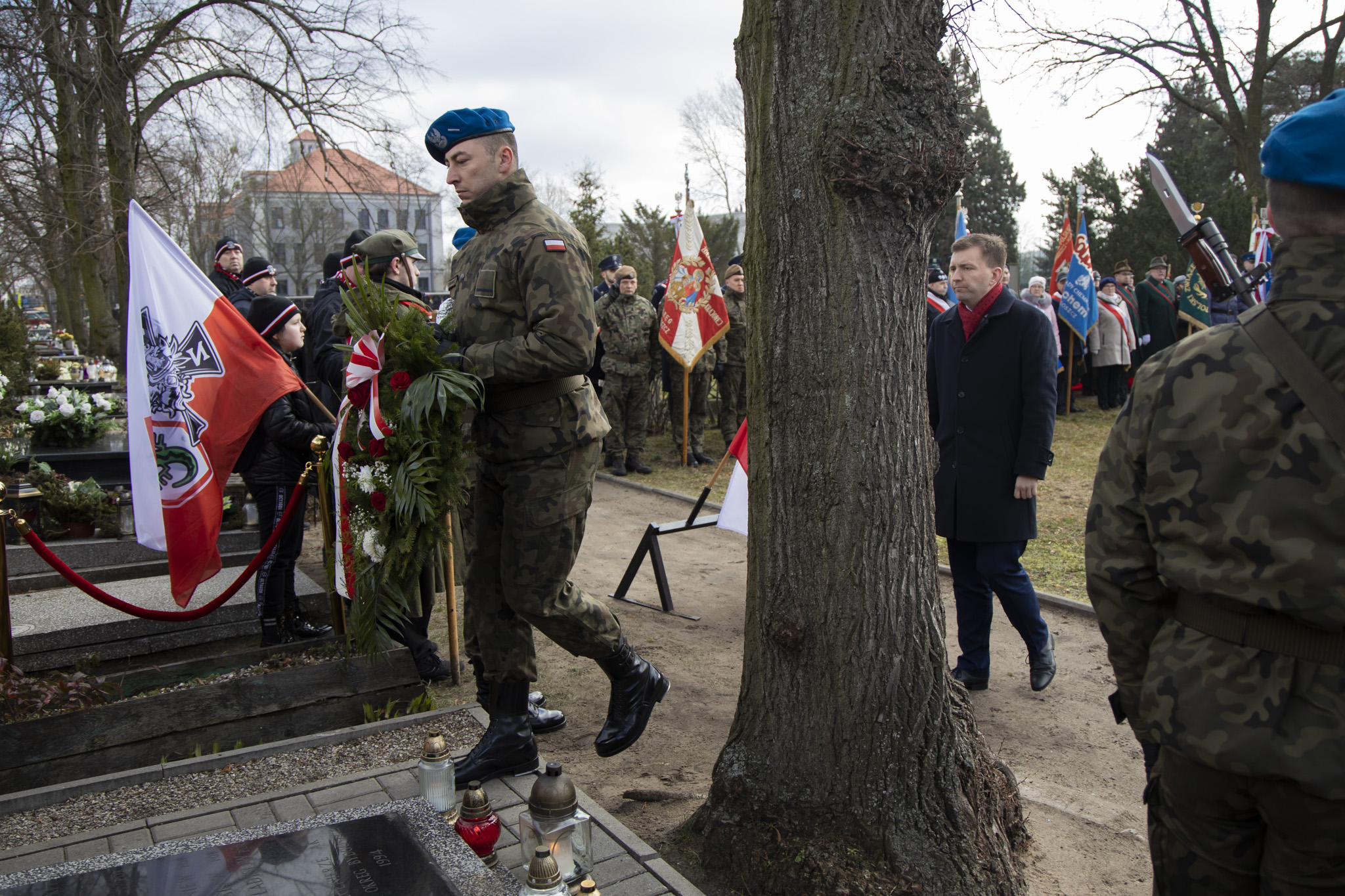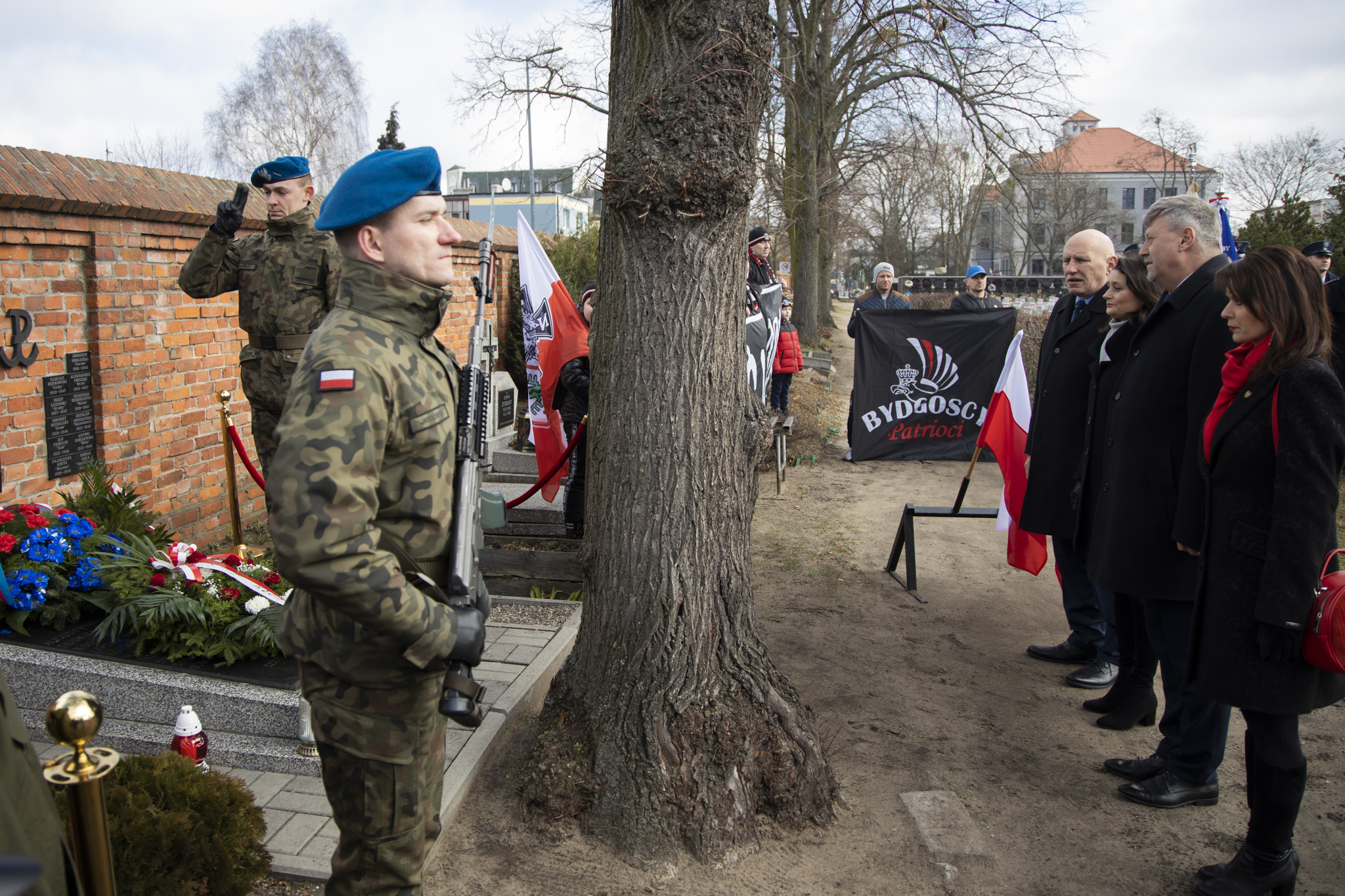 Następnie na cmentarzu przy ul. Kcyńskiej 51, w hołdzie bohaterom – Żołnierzom Niezłomnym złożone zostały wieńce i kwiaty przy asyście wojskowej oraz znicze na miejscach pochówku Żołnierzy Niezłomnych. Wojsko oddało uroczystą salwę honorową.