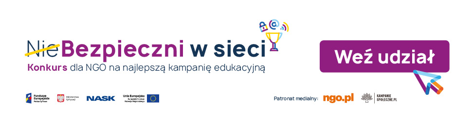 W organizacjach pozarządowych siła! Chcemy z niej skorzystać i działać razem. Dlatego ogłaszamy konkurs na pomysł na najlepszą kampanię informacyjno-edukacyjną poświęconą bezpieczeństwu w sieci, którą wspólnie zrealizujemy.