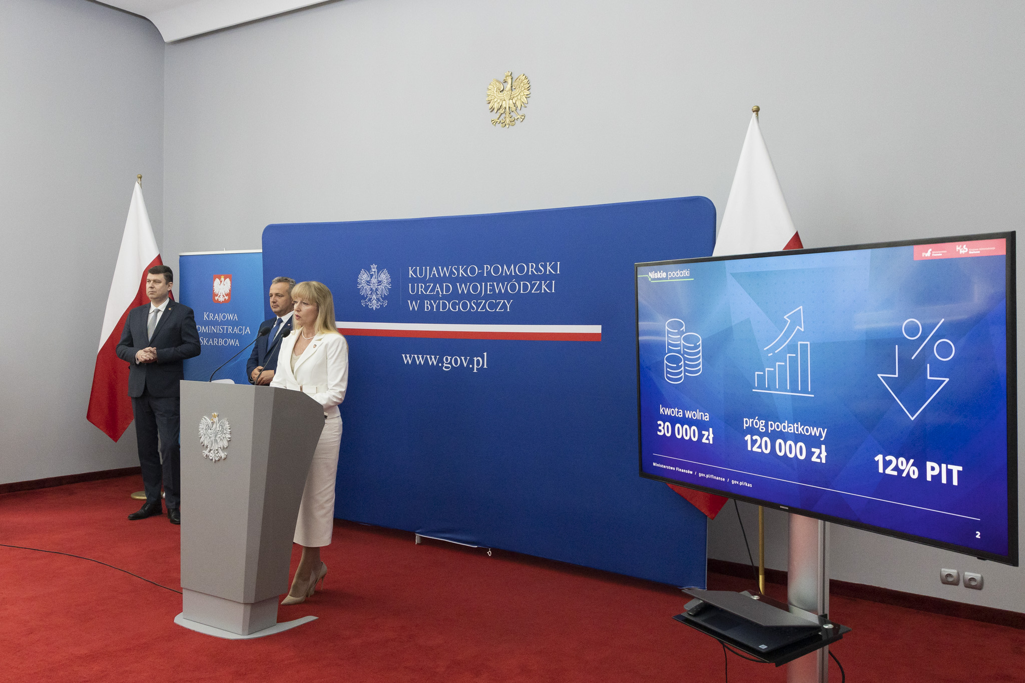 Dziś w Urzędzie Wojewódzkim odbył się briefing prasowy poświęcony tej ustawie. Wzięli w nim udział: Wojewoda Kujawski-Pomorski Mikołaj Bogdanowicz oraz Dyrektor Izby Administracji Skarbowej w Bydgoszczy Beata Adamowicz.