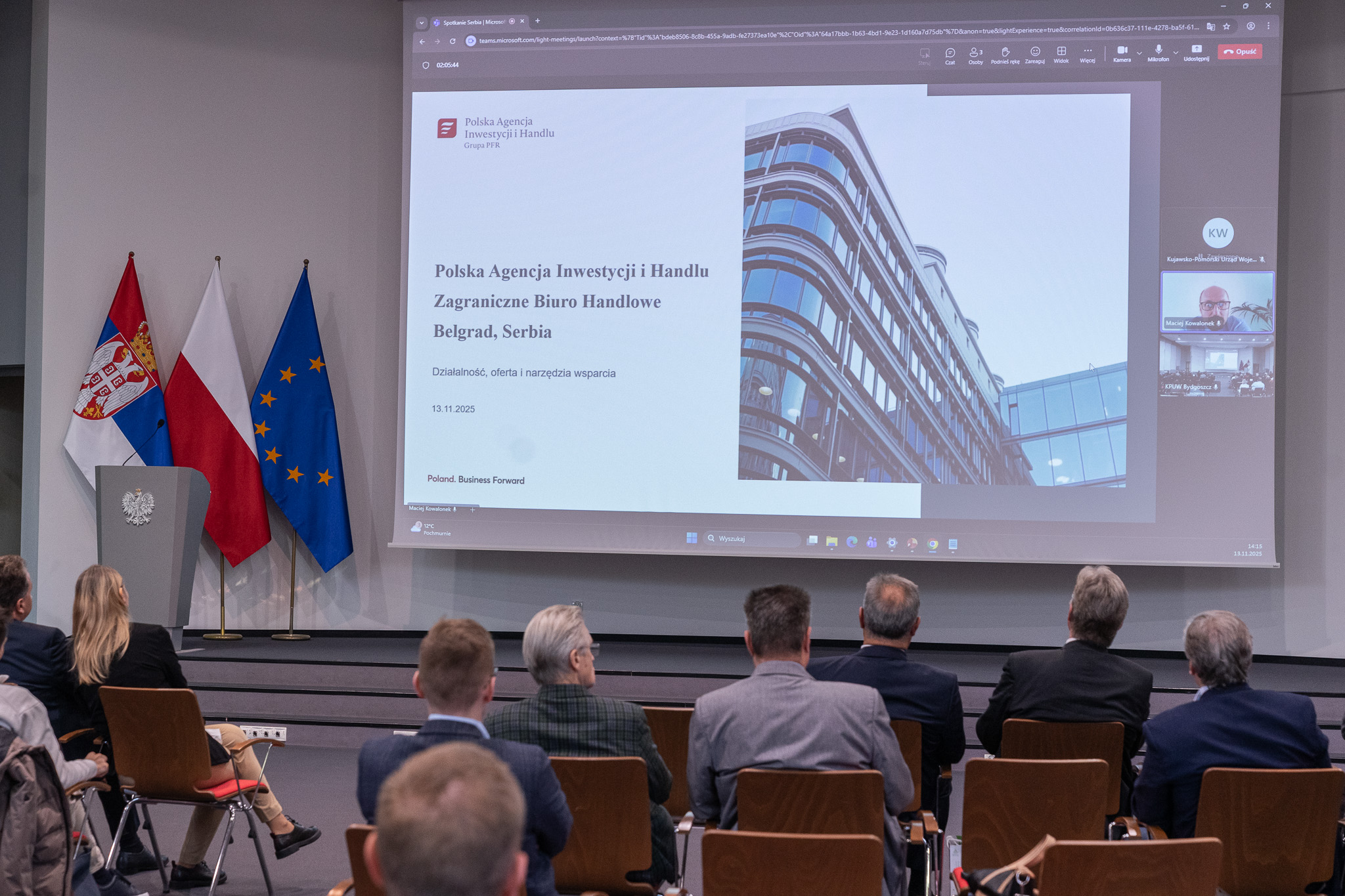 Ważną częścią agendy był blok poświęcony wsparciu eksportu, prowadzony przez Polską Agencję Inwestycji i Handlu (PAIH). Tomasz Hoppe z RBH PAIH w Bydgoszczy oraz Maciej Kowalonek z ZBH PAIH Belgrad przedstawili praktyczne narzędzia dla polskich firm planujących ekspansję na rynek serbski.