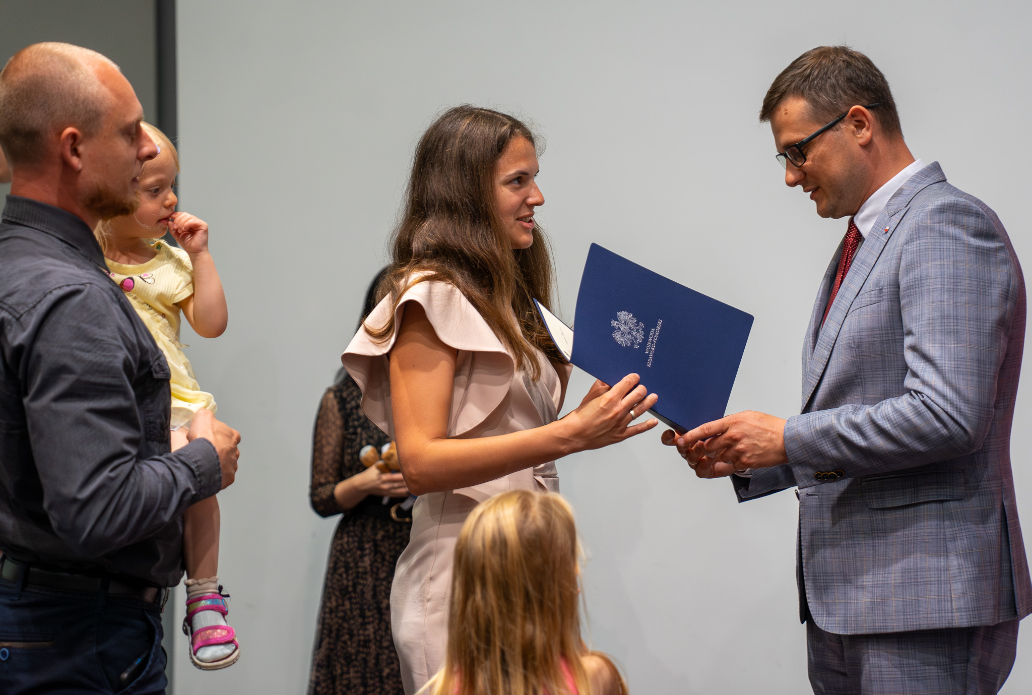 W Kujawsko-Pomorskim Urzędzie Wojewódzkim w Bydgoszczy odbyła się dziś uroczystość wręczenia decyzji o uznaniu za obywatela polskiego. W wydarzeniu wzięli udział Wojewoda Michał Sztybel oraz Dyrektor Wydziału Spraw Obywatelskich Elżbieta Kruszka. Nowym obywatelom towarzyszyły rodziny oraz bliscy.
