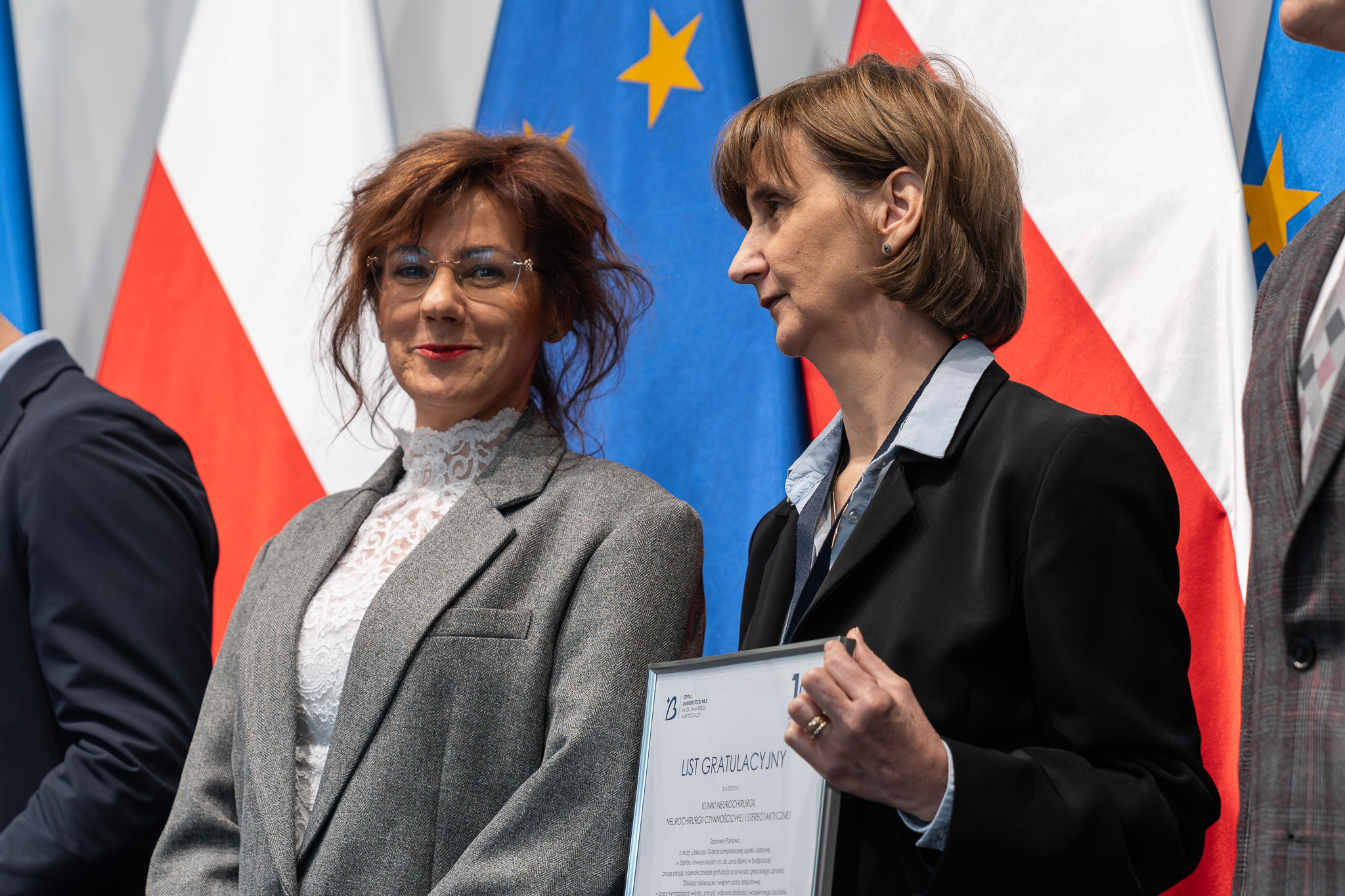 Podczas konferencji Ministra Zdrowia wręczyła odznaczenia „Za zasługi dla ochrony zdrowia” oraz listy gratulacyjne dla kluczowych zespołów: Kliniki Neurologii, Neurochirurgii, Zakładu Radiologii, Pracowni Radiologii Zabiegowej oraz Oddziału Klinicznego Medycyny Ratunkowej.